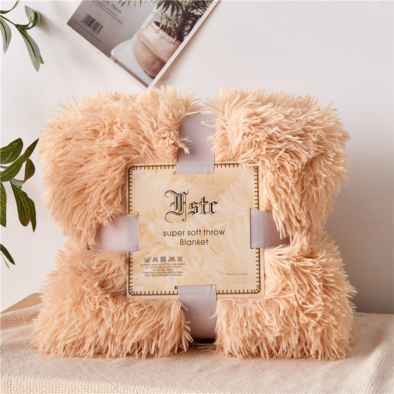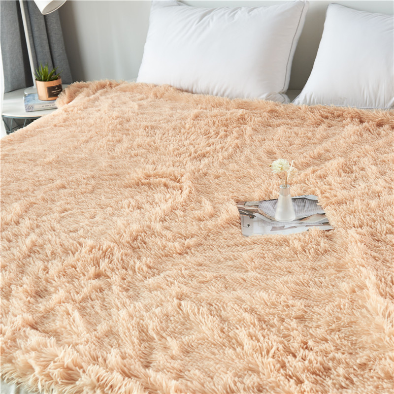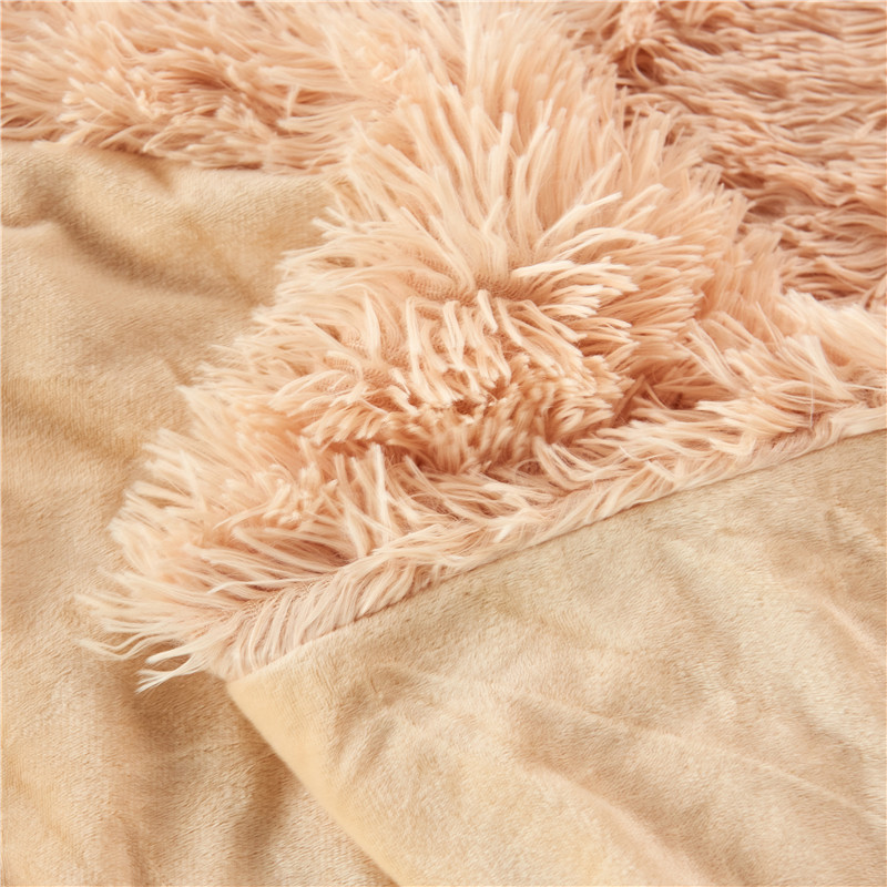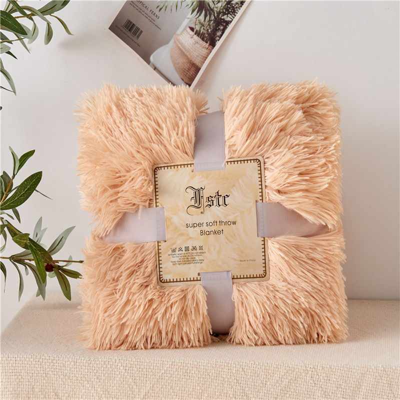 品尚嘉 2025水貂绒毛毯长毛绒法莱绒双层跨境外贸毯子奶茶米