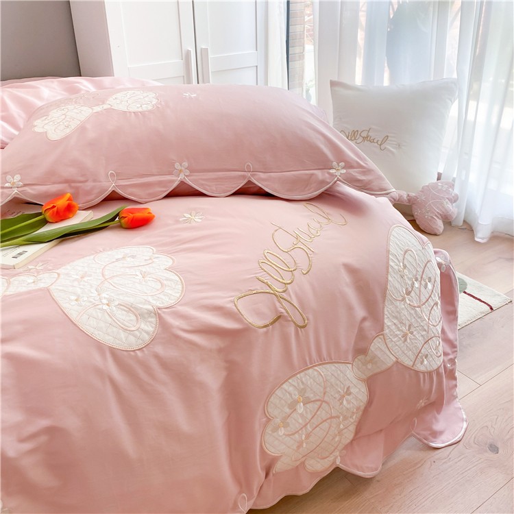 (总)星野 2025新款高克重牛奶绒贴布绣四件套-波点兔,波点兔