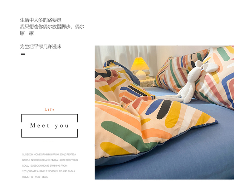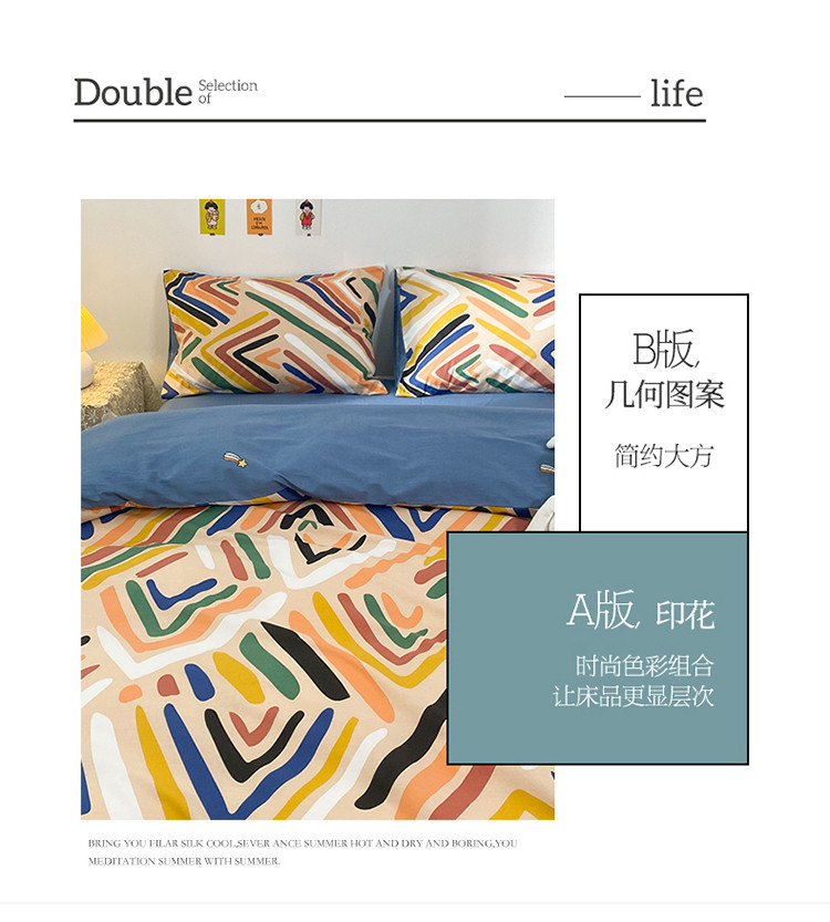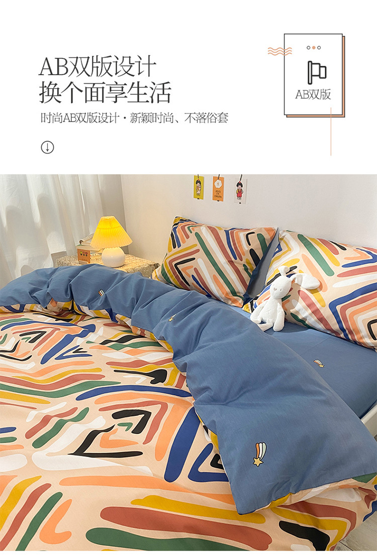 (总)2023新款40支纱全棉13070锁边工艺款四件套系列,格子爱心,嘉兰,咖条,朗尼,小兔兔,星星兔