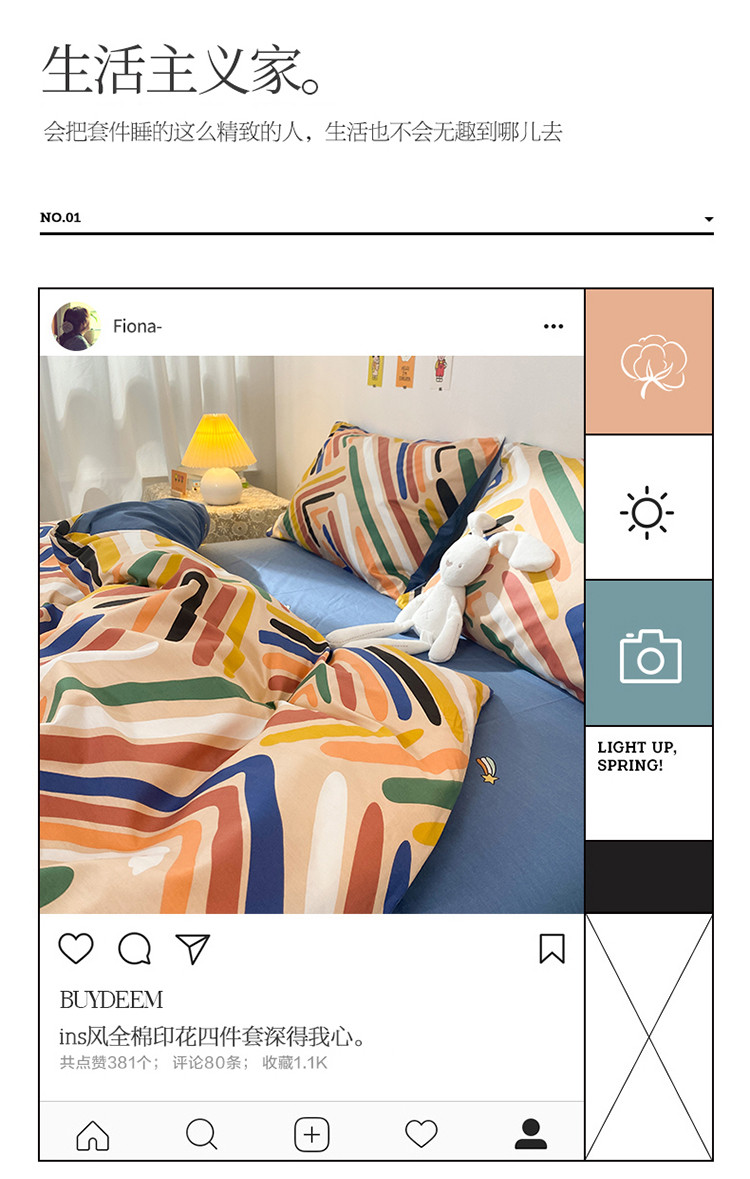 商品名称:珺柔家纺 2021新款全棉印花四件套 畅想