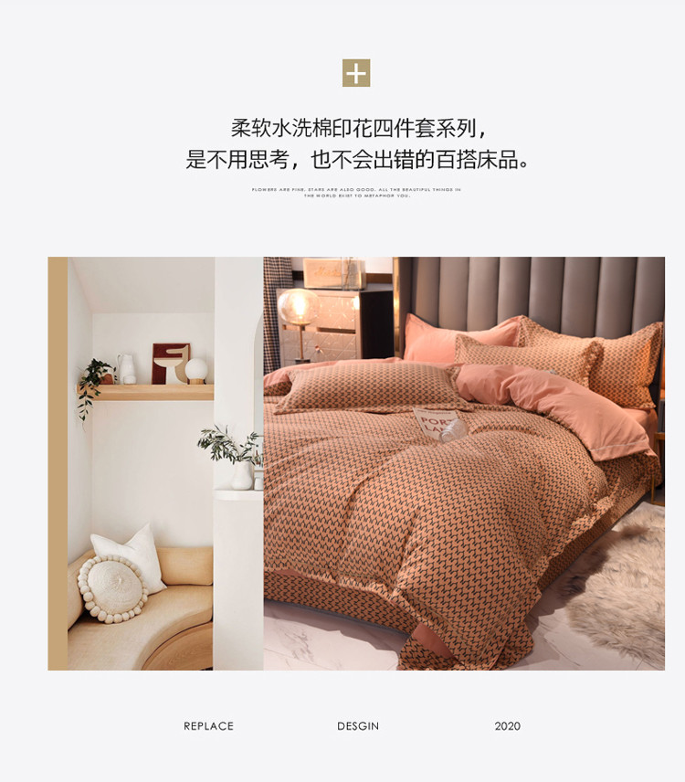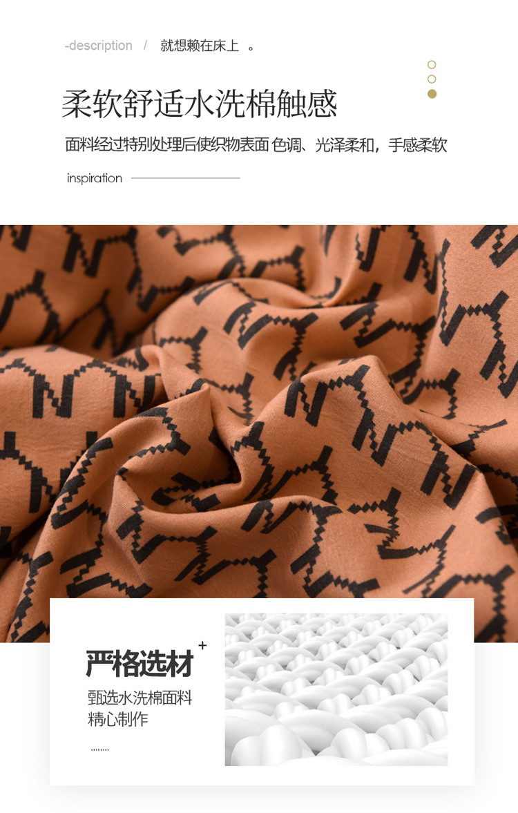 绒世界 2021新款水洗棉印花千鸟格四件套 稻草黄