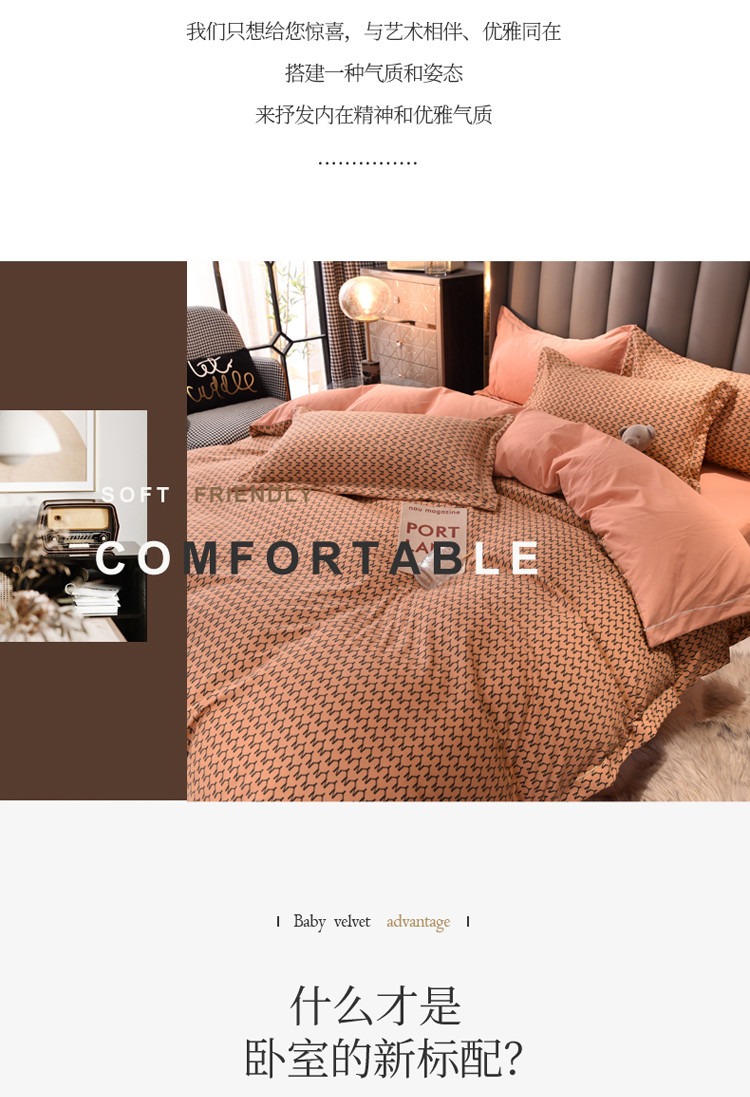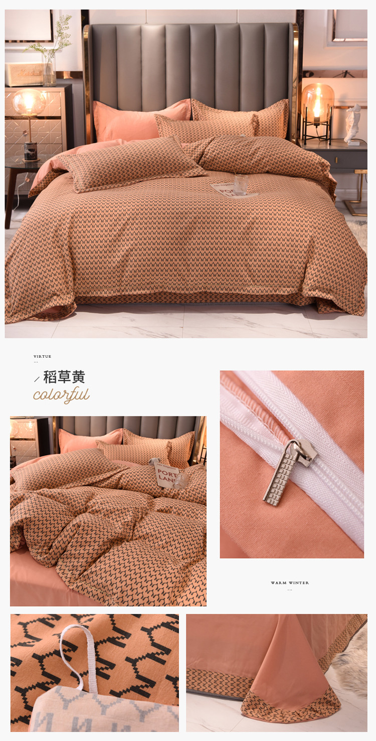 (总)绒世界 2025秋冬小香风香奈系列牛奶绒四件套,爱马仕橙,都市灰,蜜桃粉,奶昔白,秋波蓝,薰衣紫,樱花粉