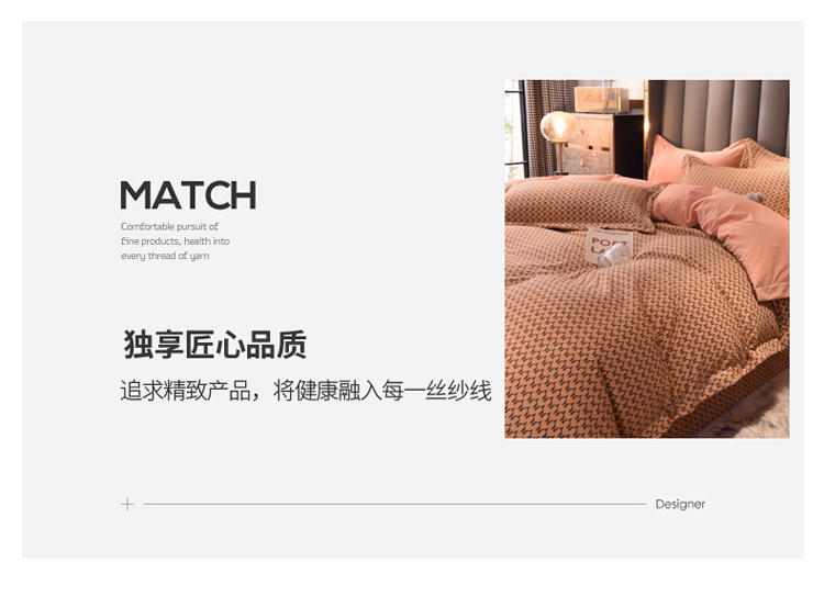 商品名称:绒世界 2021新款水洗棉印花千鸟格四件套 稻草黄