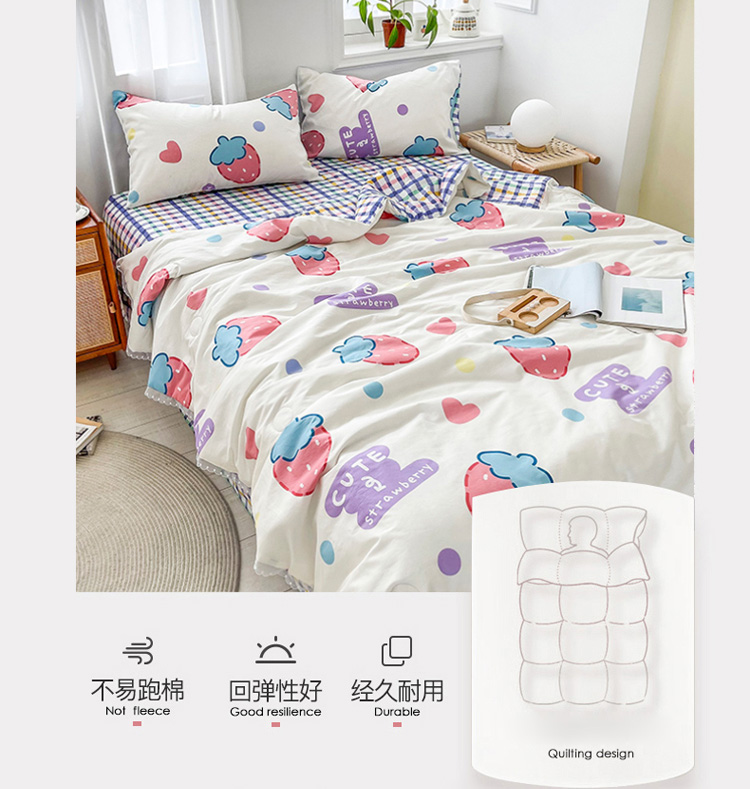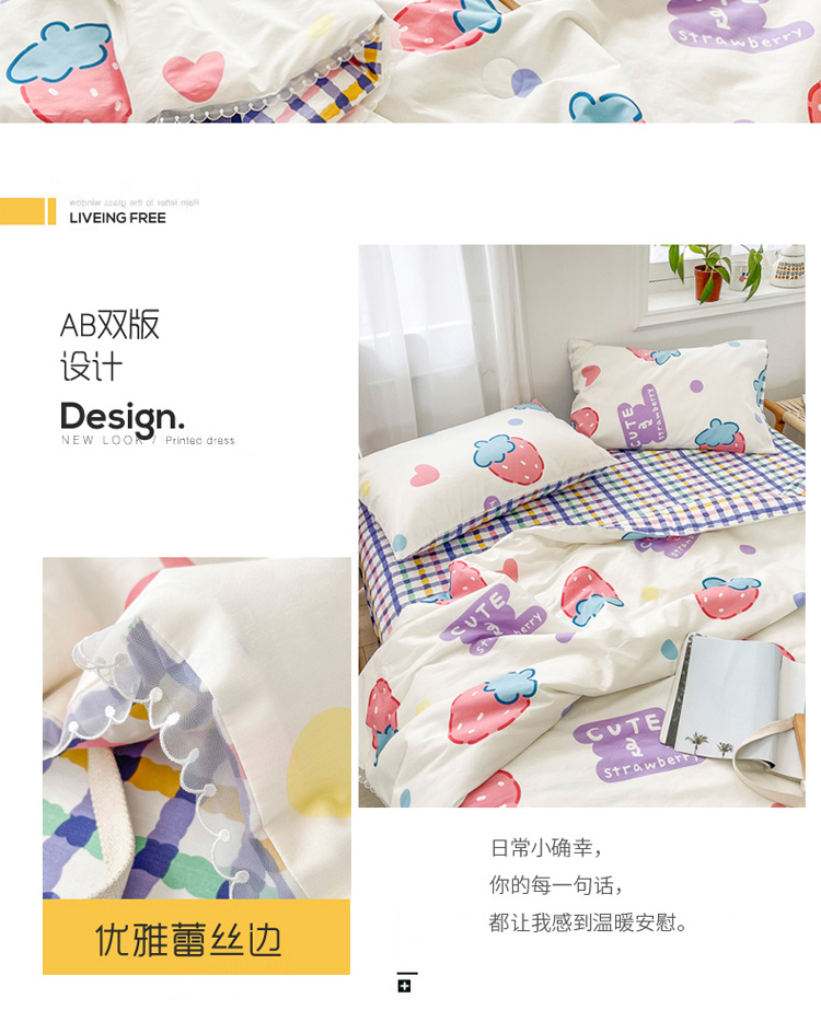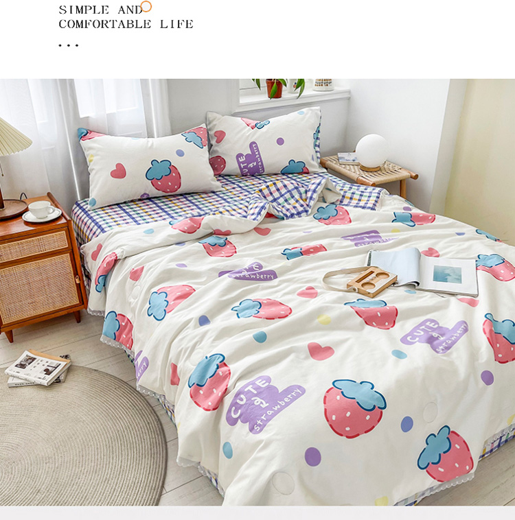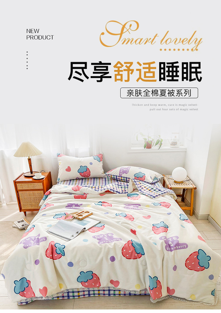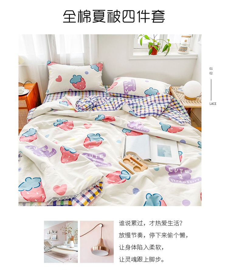 • 91家纺网 家纺一手货源 找家纺 寐居家纺 2021新款13370全棉夏被四件套 疯狂草莓