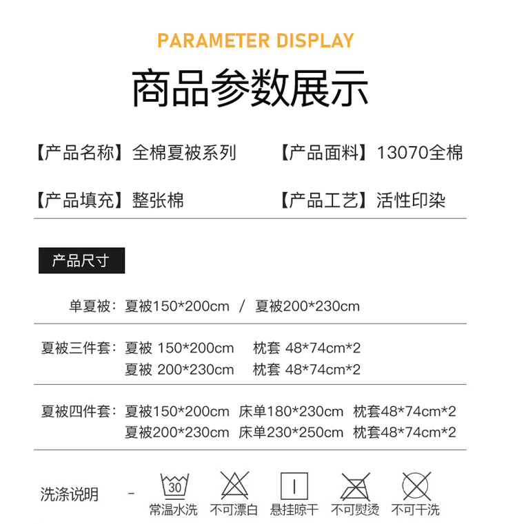 • 适用季节: 空调被/夏凉被
