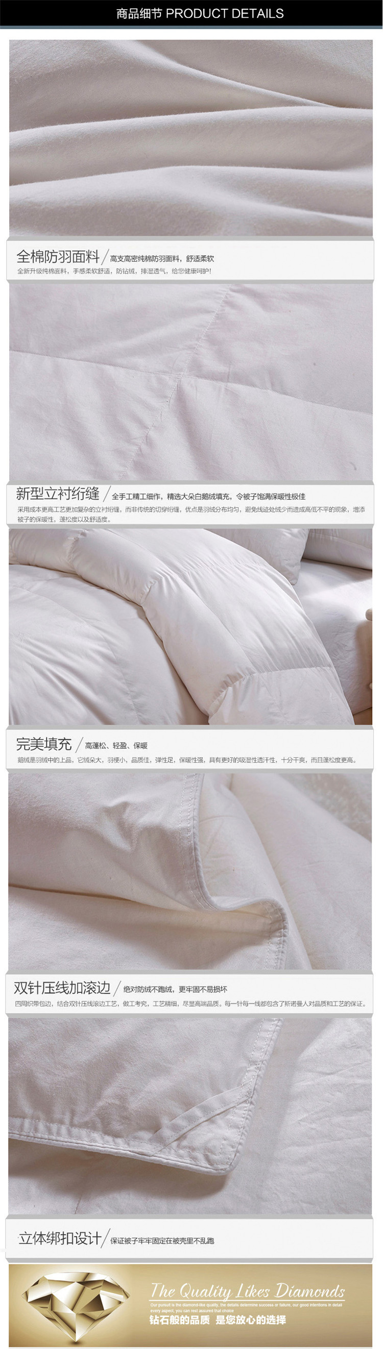 新款全棉贡缎陶瓷磨毛超柔静音不跑被优眠鹅绒被 羽绒被,白色,水绿色,银灰色