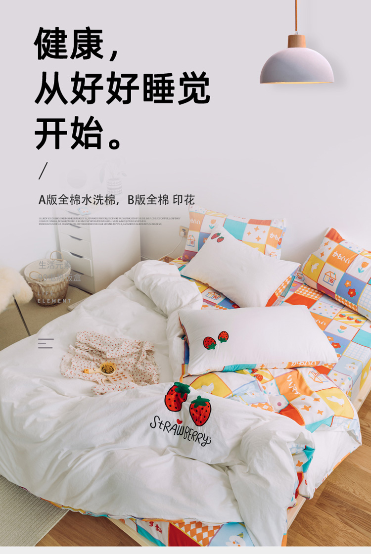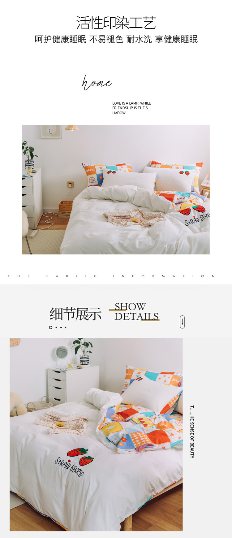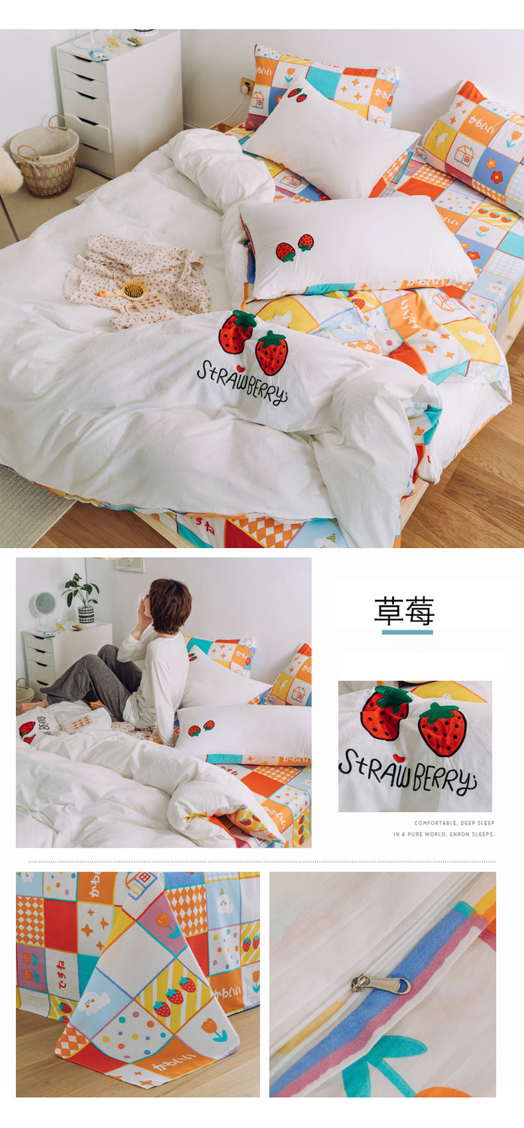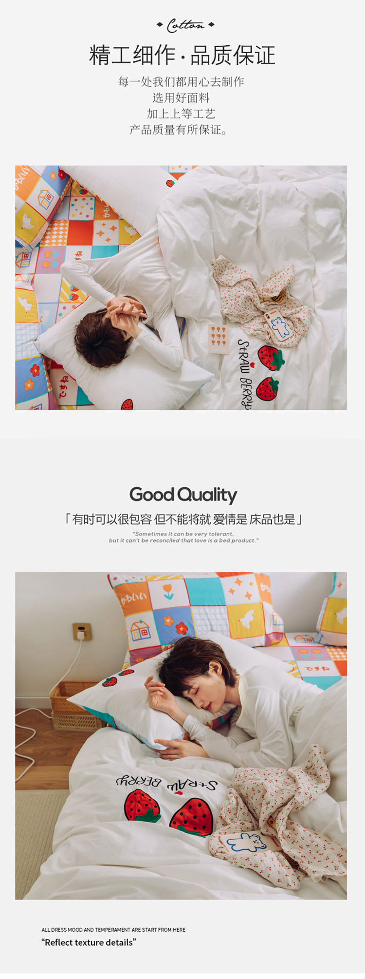 商品名称:雅居纺 2022新款全棉水洗棉绣花四件套 草莓