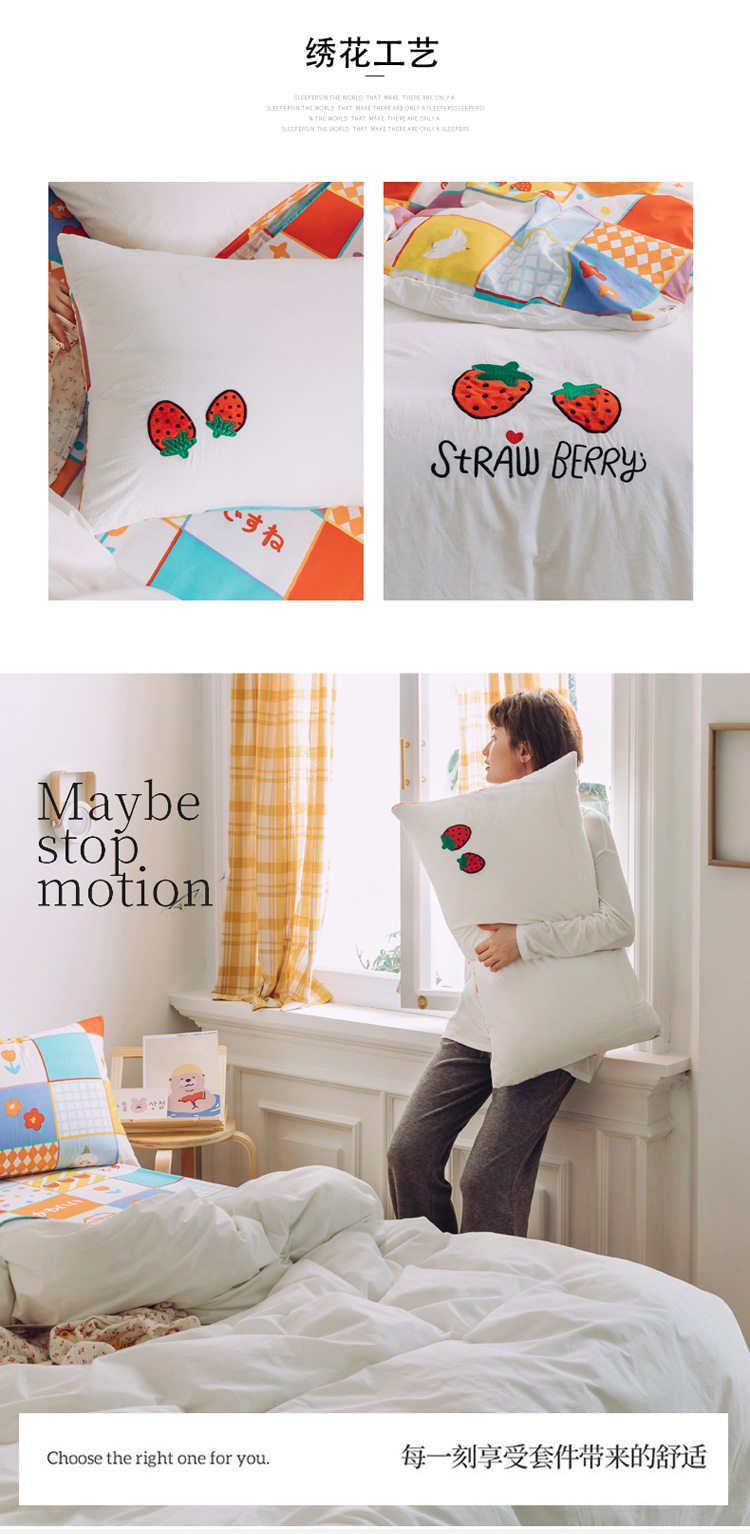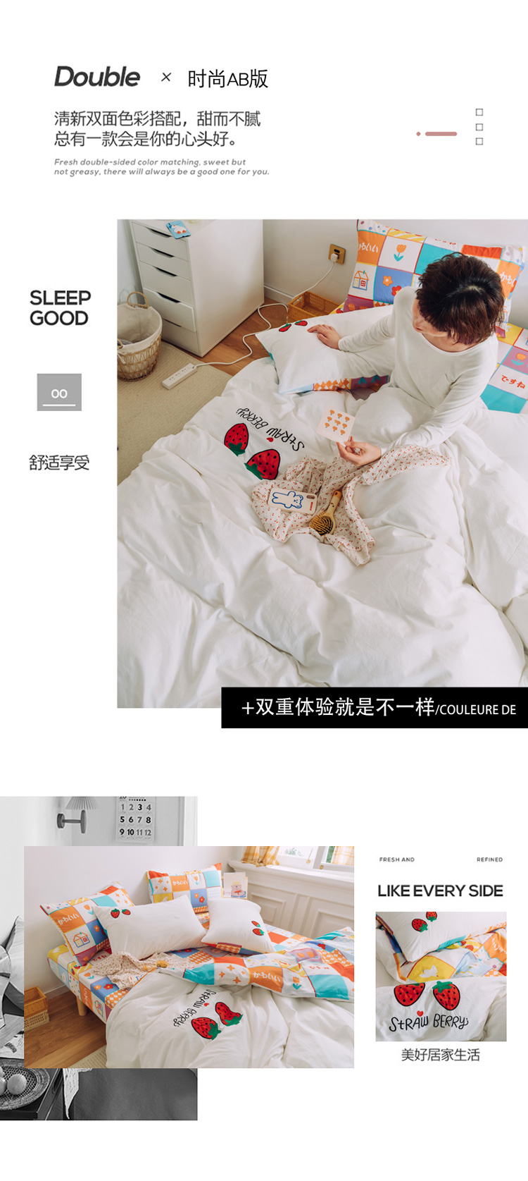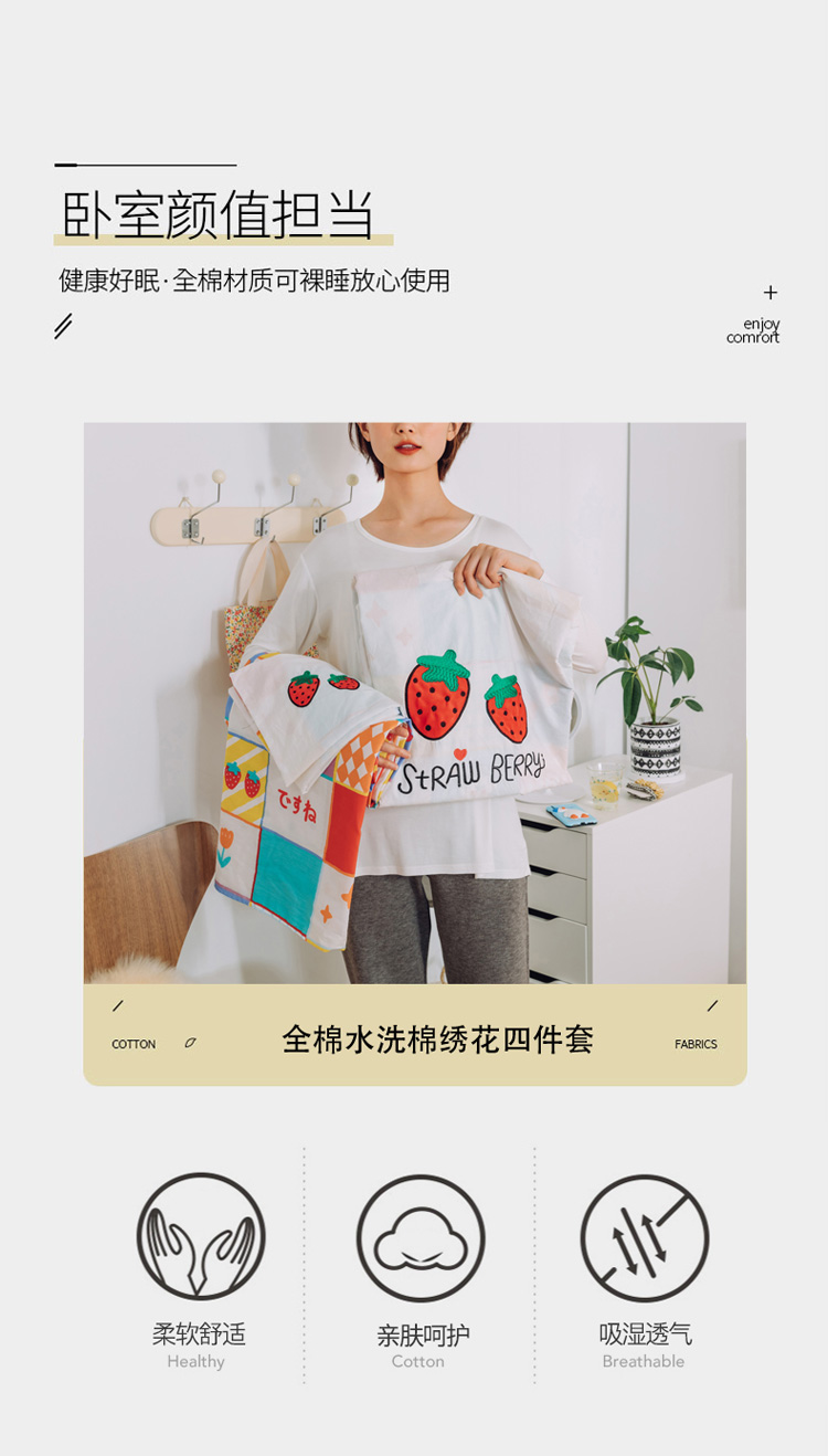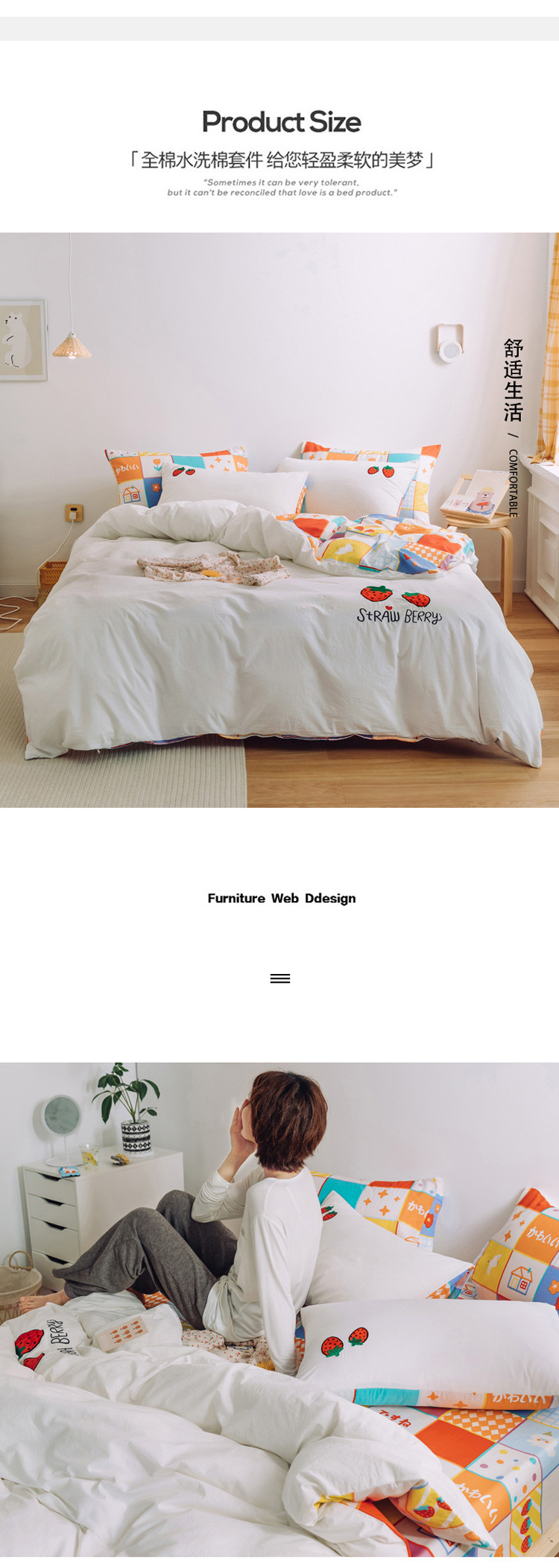 商品名称:雅居纺 2022新款全棉水洗棉绣花四件套 草莓