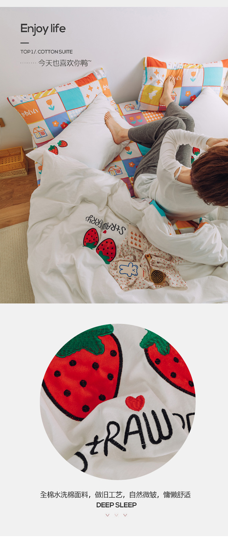 雅居纺 2022新款全棉水洗棉绣花四件套 草莓