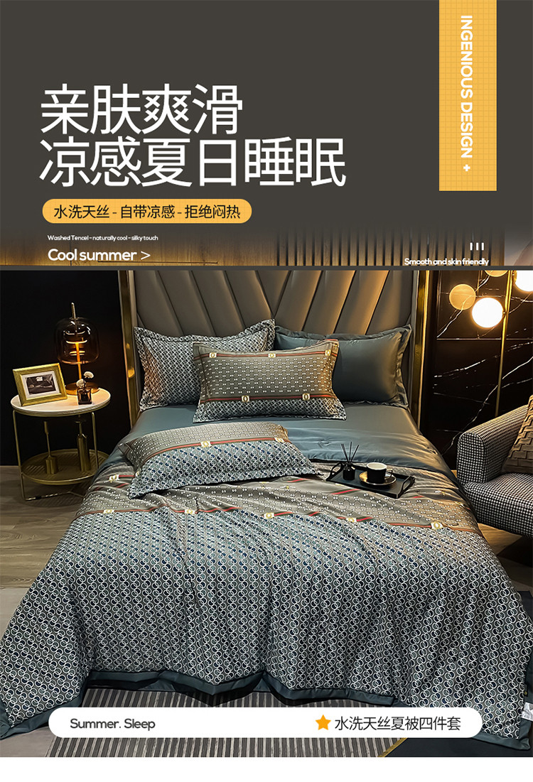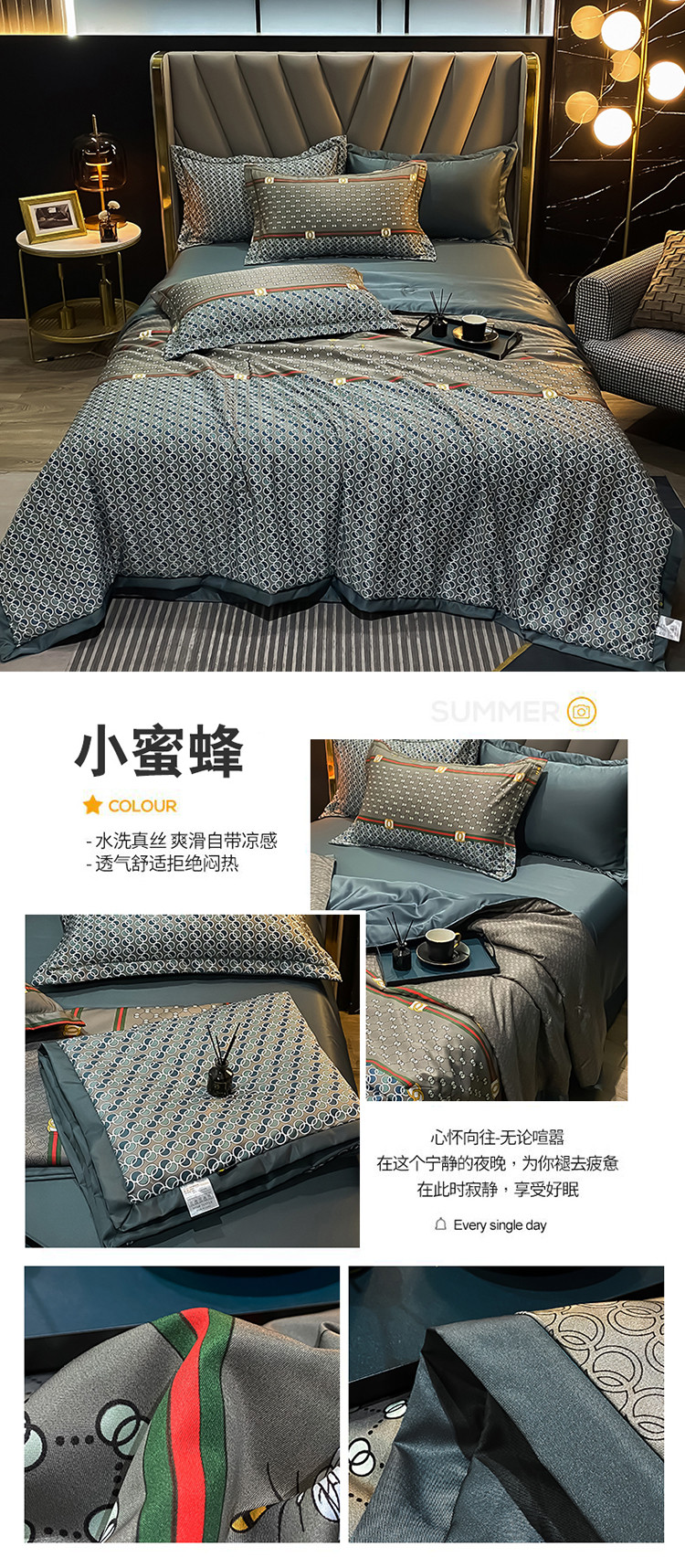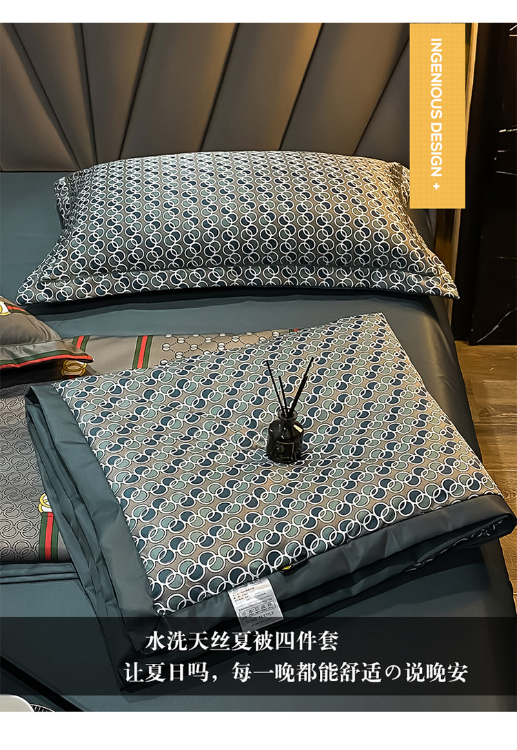 2021新品水洗天丝夏被四件套三件套空调被水洗真丝冰丝夏凉被