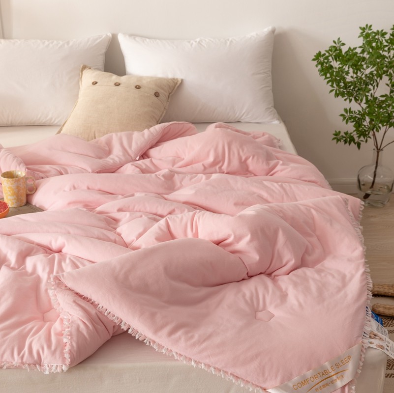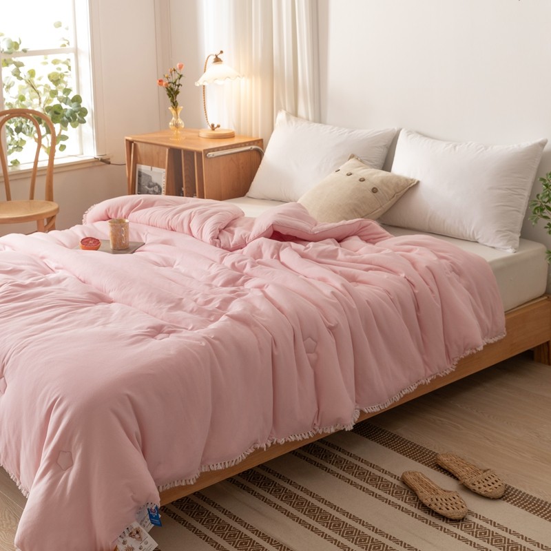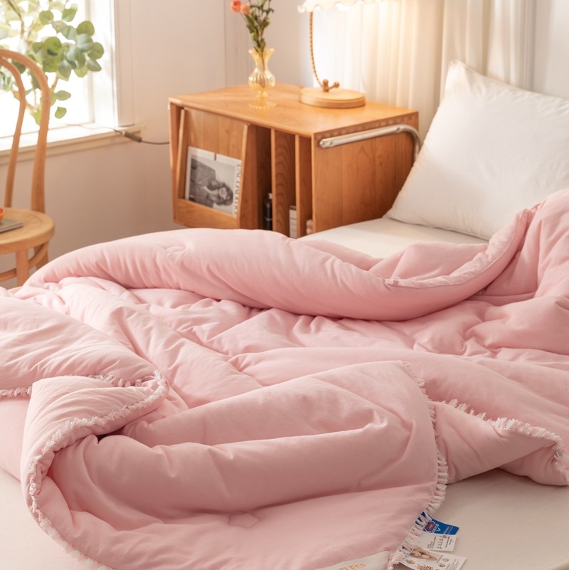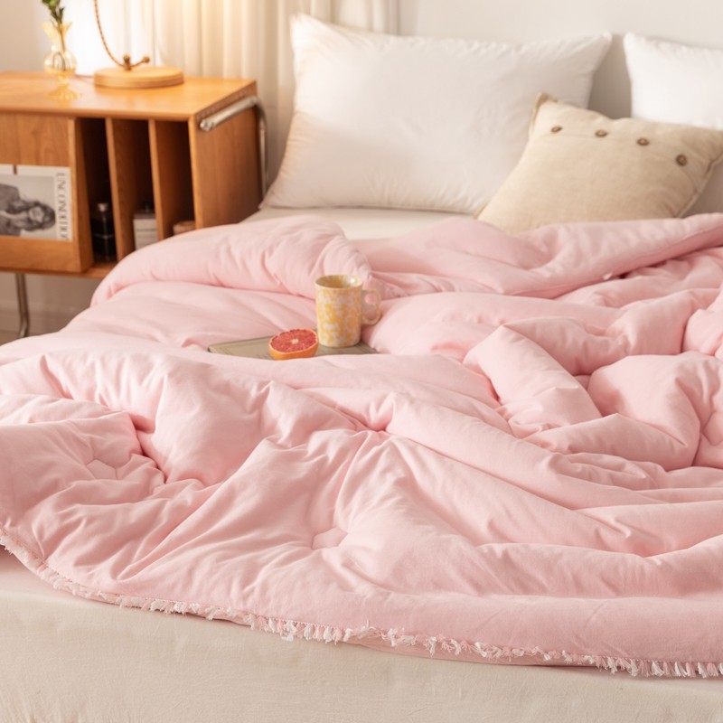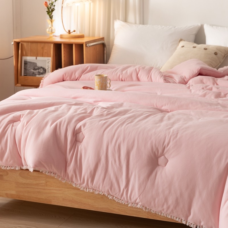 • 91家纺网 家纺一手货源 找家纺 简煦 新款全棉针织20%大豆抗菌被芯系列 针织棉柳絮边-浅粉