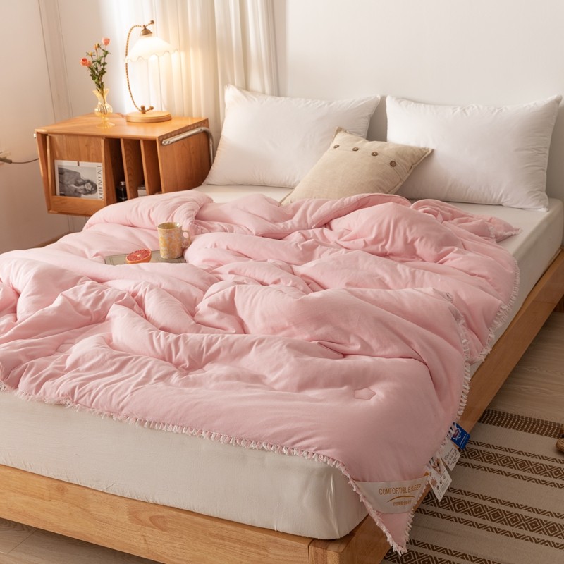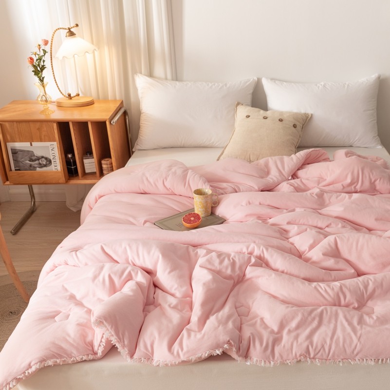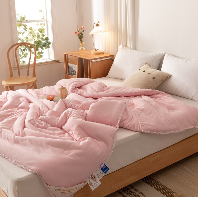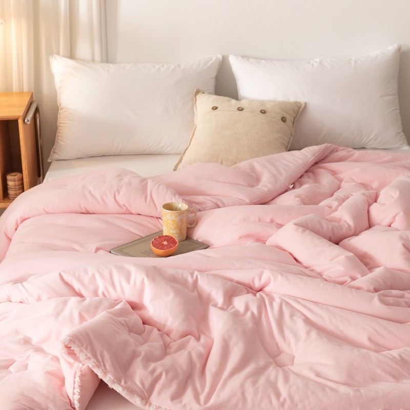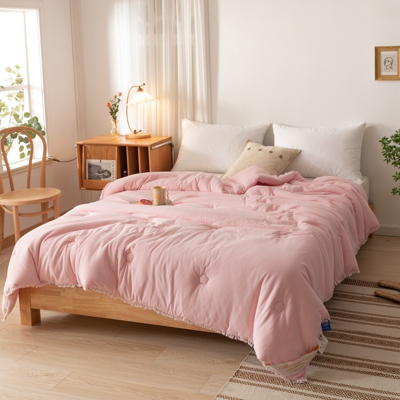 • 91家纺网 家纺一手货源 找家纺 简煦 新款全棉针织20%大豆抗菌被芯系列 针织棉柳絮边-浅粉
