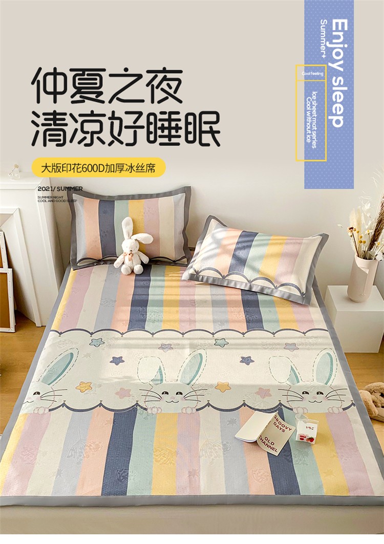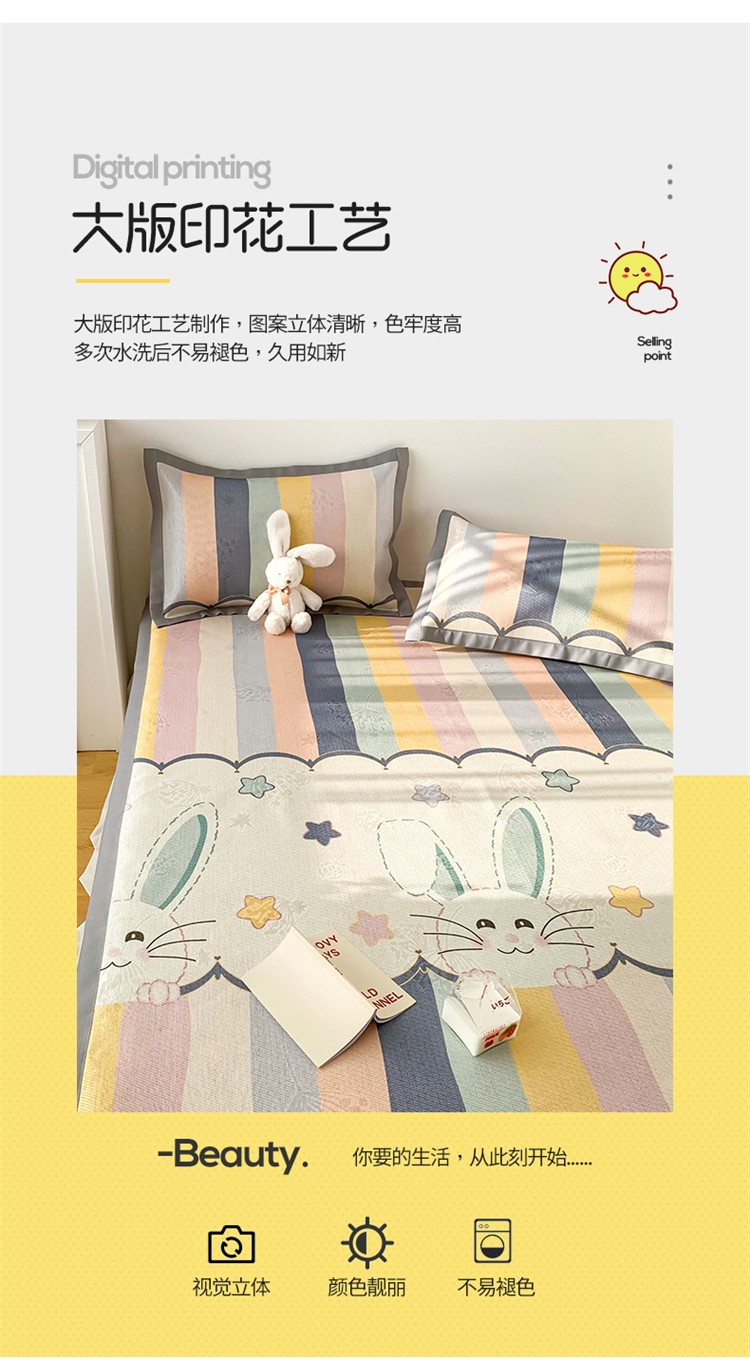 (总)懒猫家纺 2022新款学生宿舍冰丝数码印花凉席,尔雅,粉小兔,花韵,萝卜兔,清晨,手绘爱心,探索星球,甜心,小鲸鱼,小熊仔,元气兔