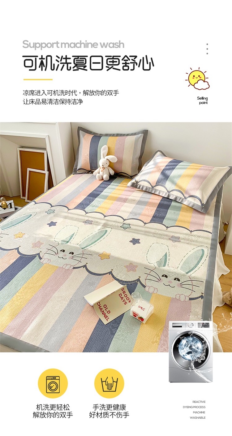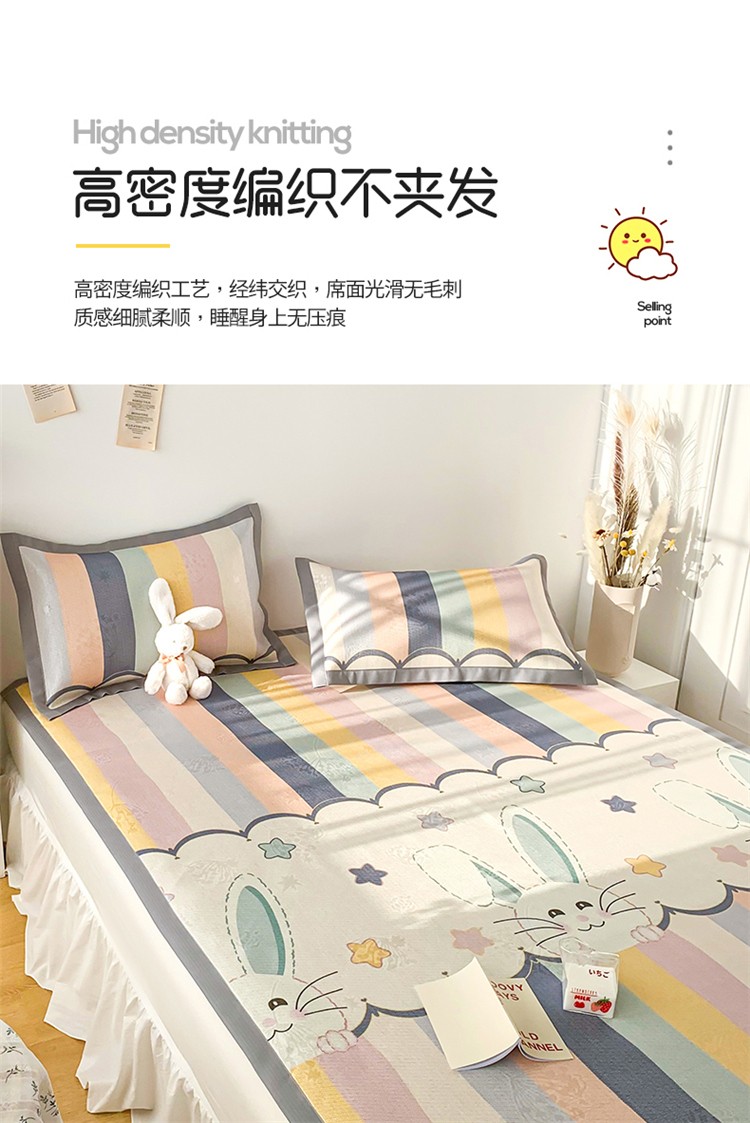 商品名称:懒猫 2021新款宽边圆网冰丝凉席三件套 兔小哈