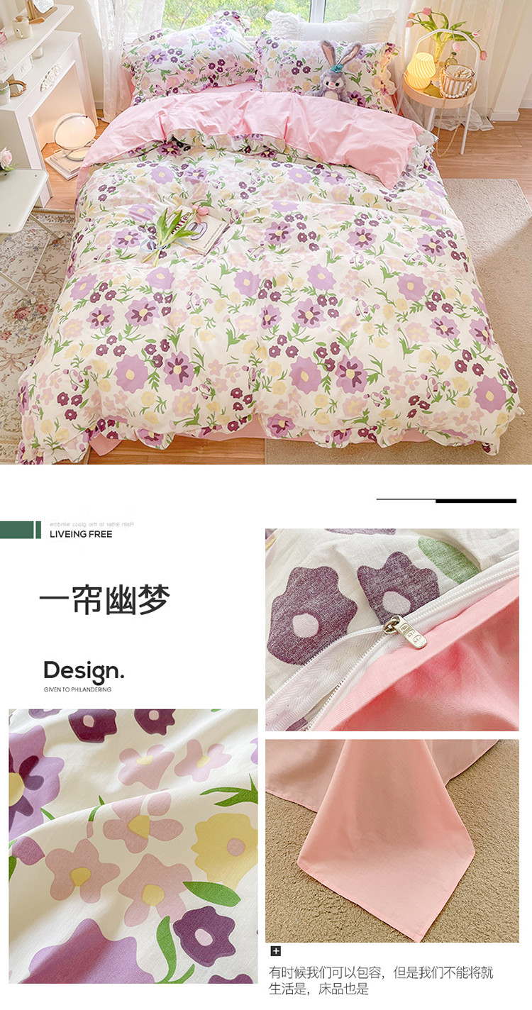 (总)琪格格 2022新款花边款纯棉荷叶边四件套