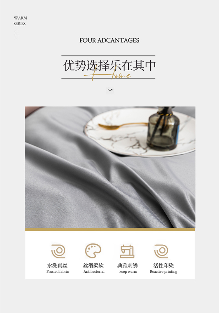 商品名称:米奈 2021新款水洗真丝拼色四件套—维亚 银灰色