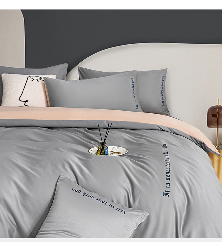 米奈 2021新款水洗真丝拼色四件套—维亚 银灰色