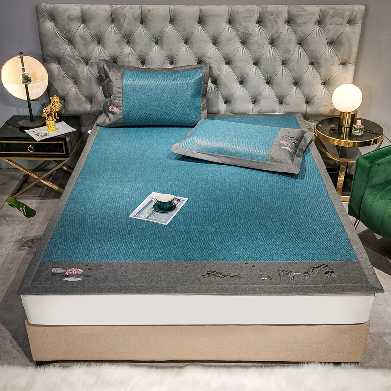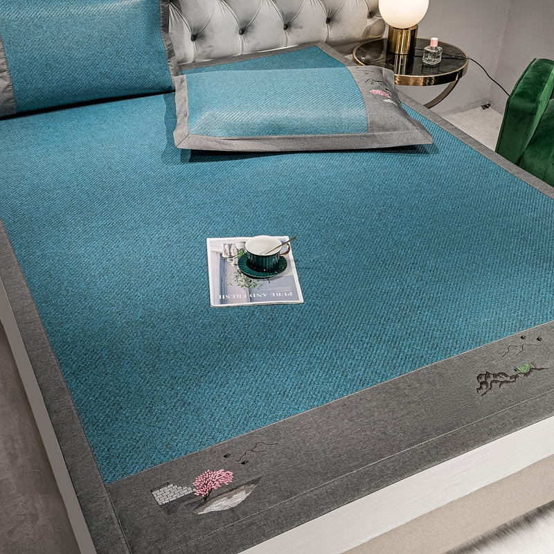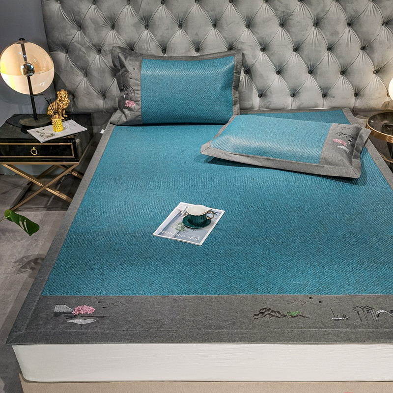 朵美 2021新款新中式养生印尼绣花藤席经典款 山水人家(孔雀蓝)