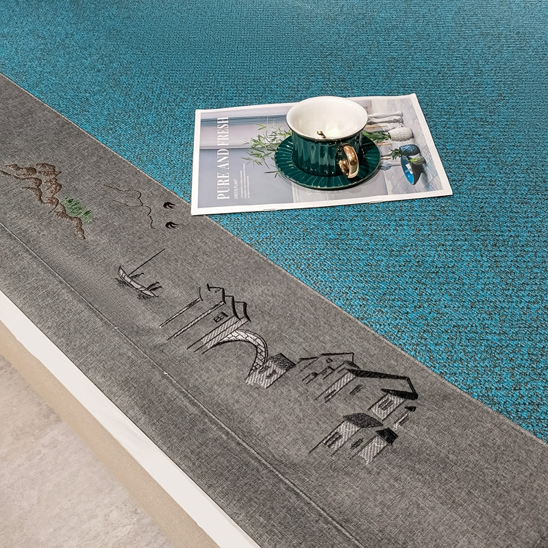 商品名称:朵美 2021新款新中式养生印尼绣花藤席经典款 山水人家(孔雀蓝)