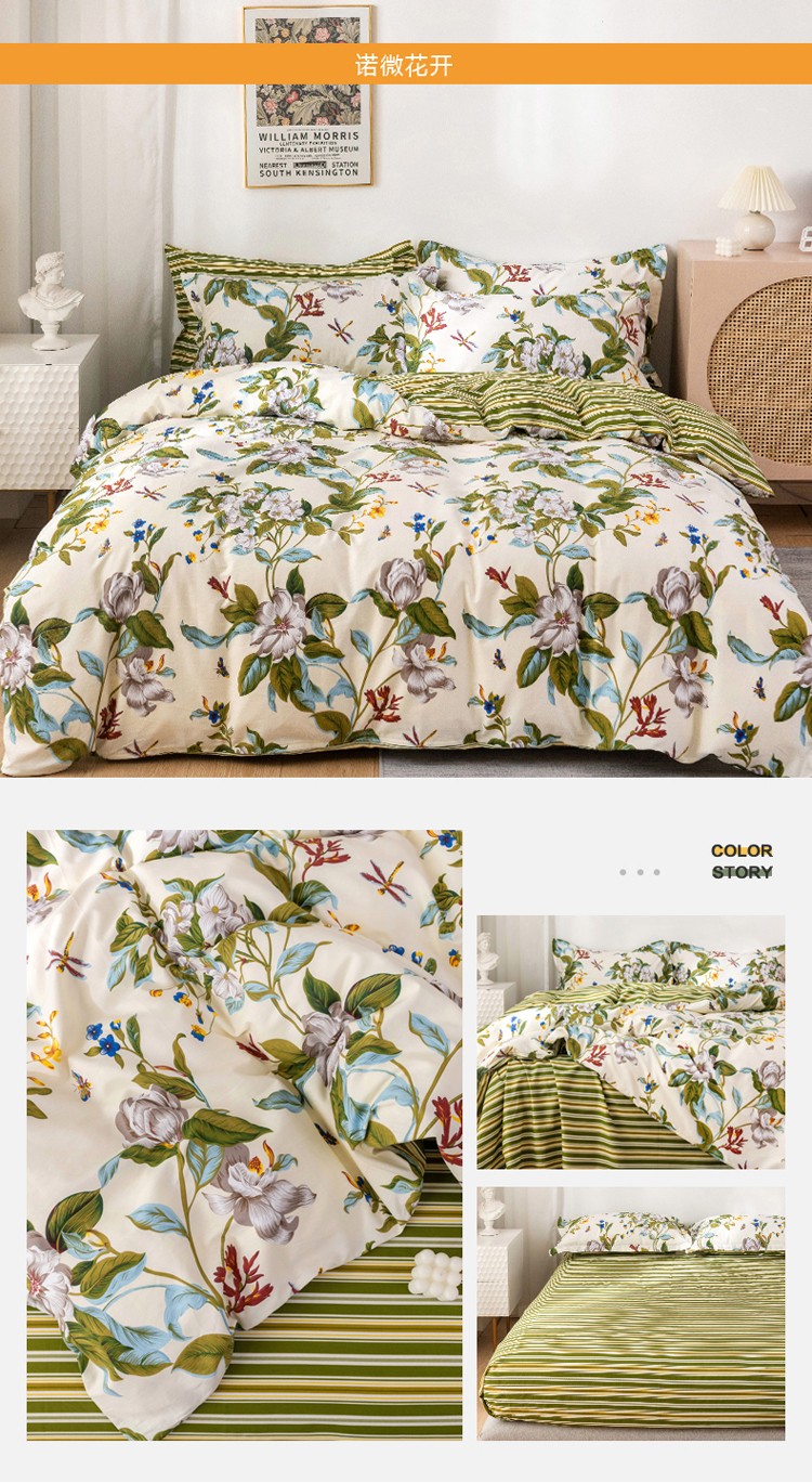 (总)星期三 2025年4月新款铂金全棉纯棉13372四件套 加微信有会员价,橙日幽香,花的旅途,花几度-绿,花佳境-咖,花枝草蔓,柔纱花影,棠影寻-粉,小雨录-紫,星际漫游