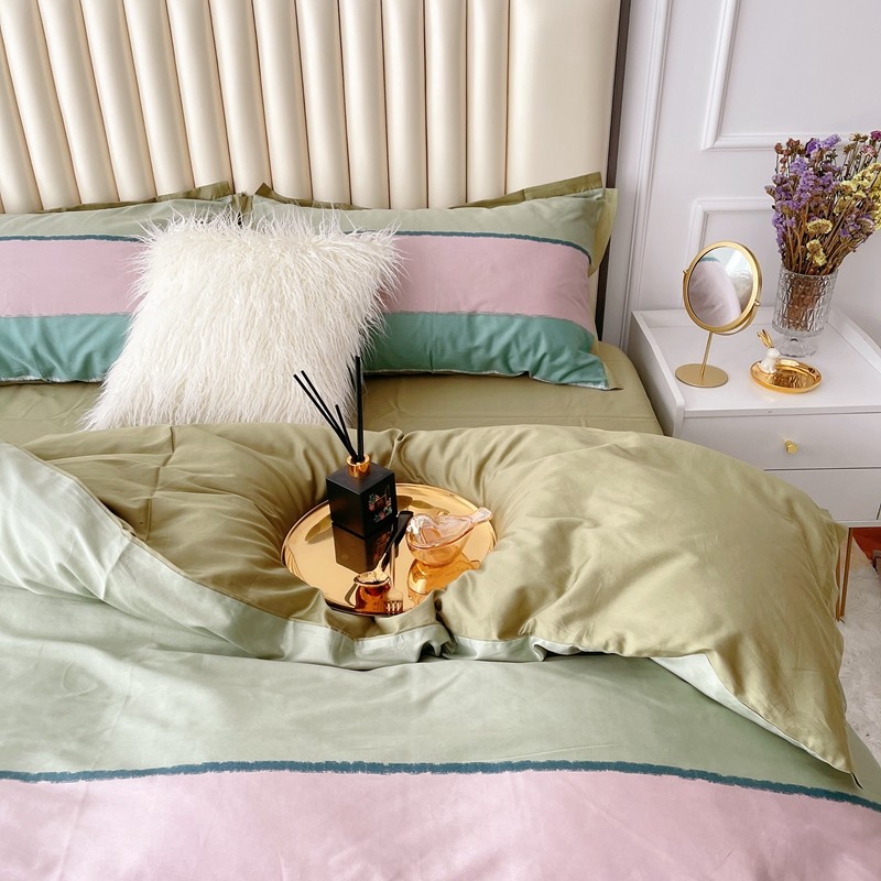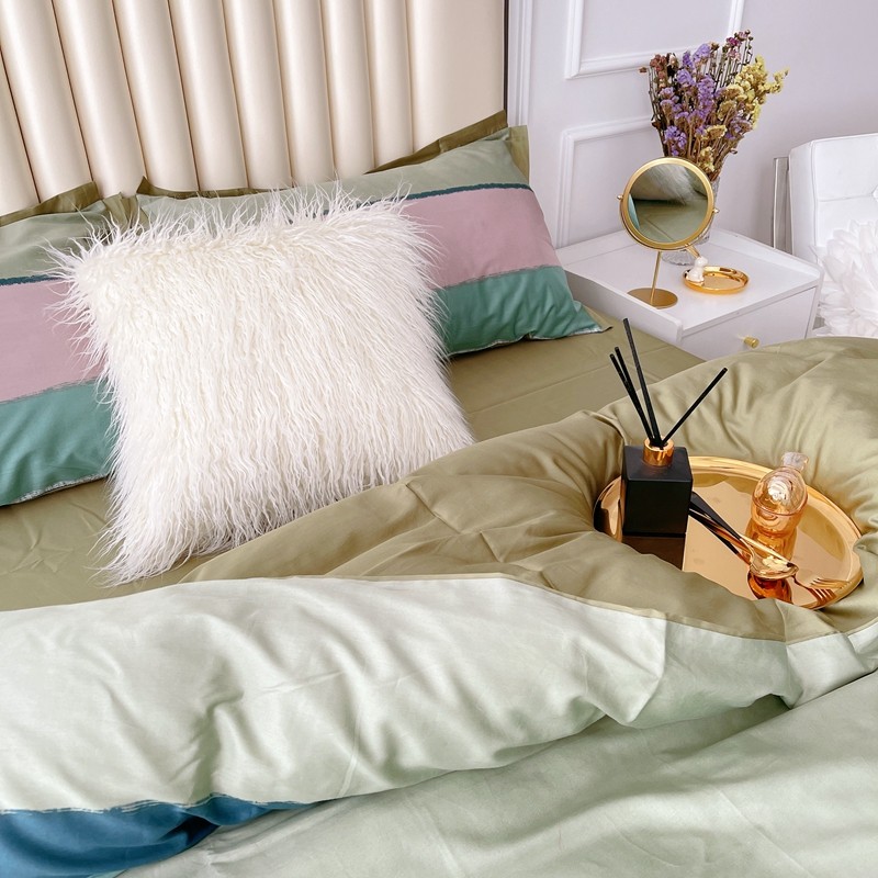 蘭菲2023新款60支贡缎长绒棉印花美式花卉四件套流行风标绿