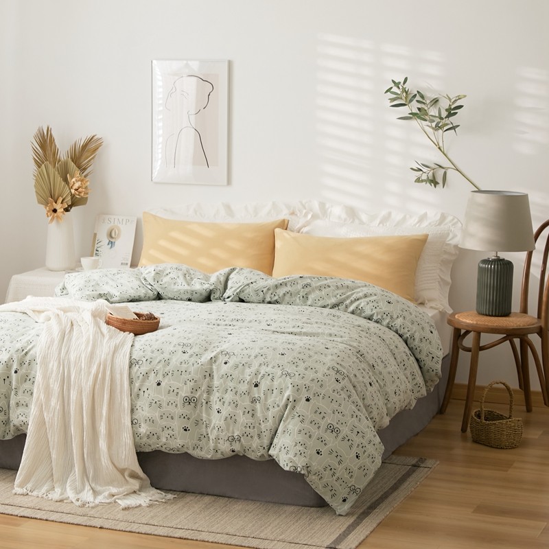 商品名称:原研家居 新款kinfolk原研针织棉印花单被套 猫咪绿
