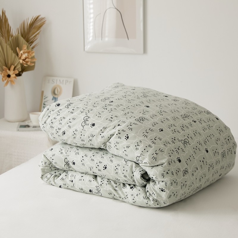 原研家居 新款kinfolk原研针织棉印花单被套 猫咪绿