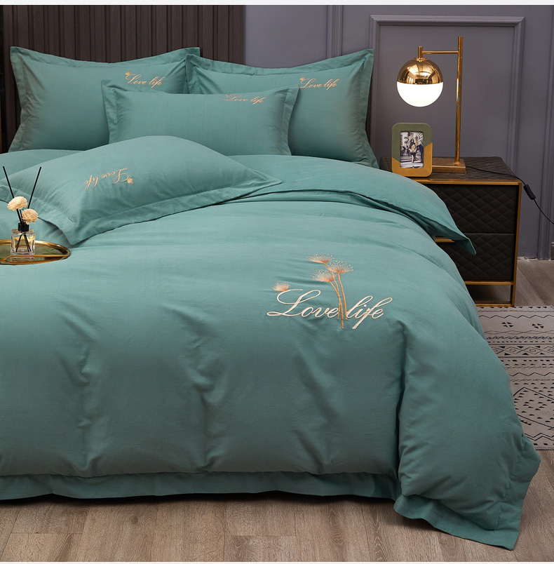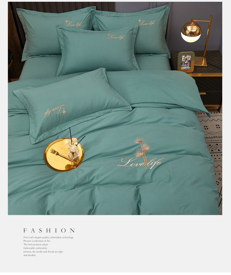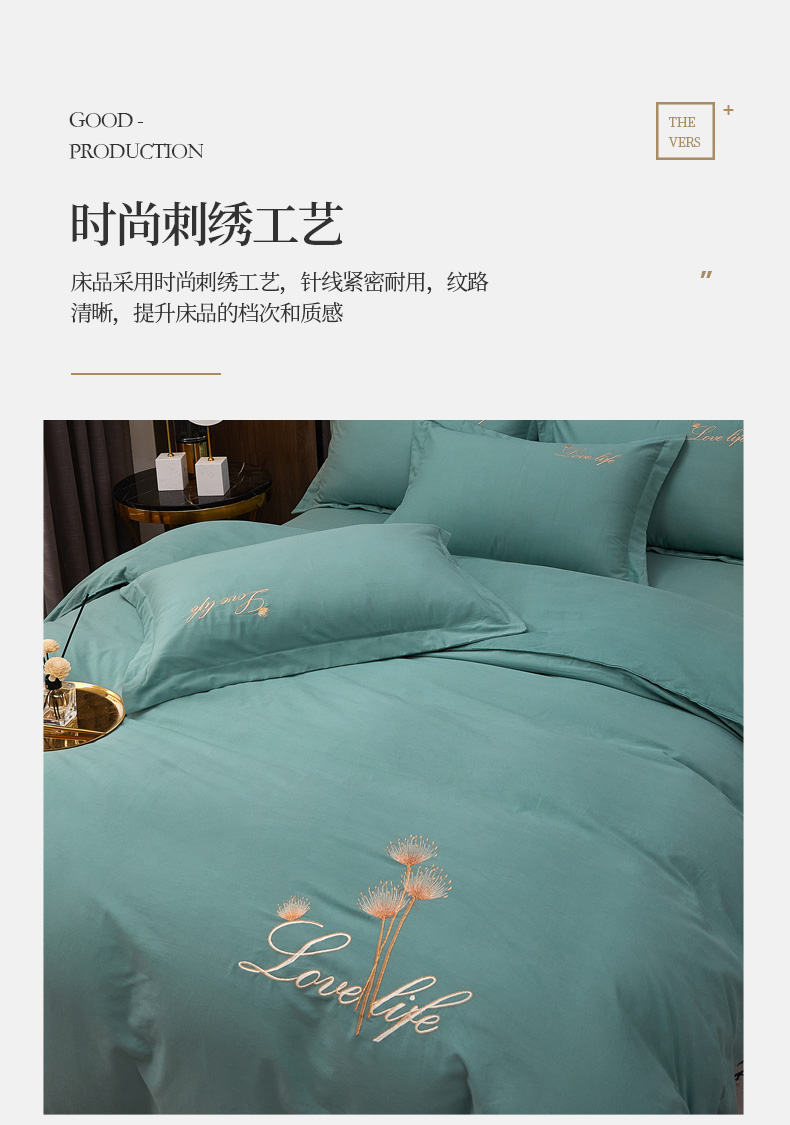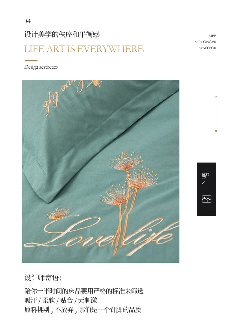 芊寻 2024新款60支全棉磨毛绣花四件套 三叶草 抹茶绿