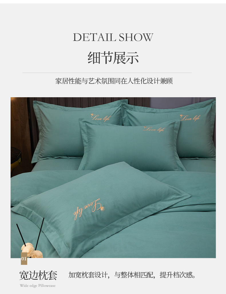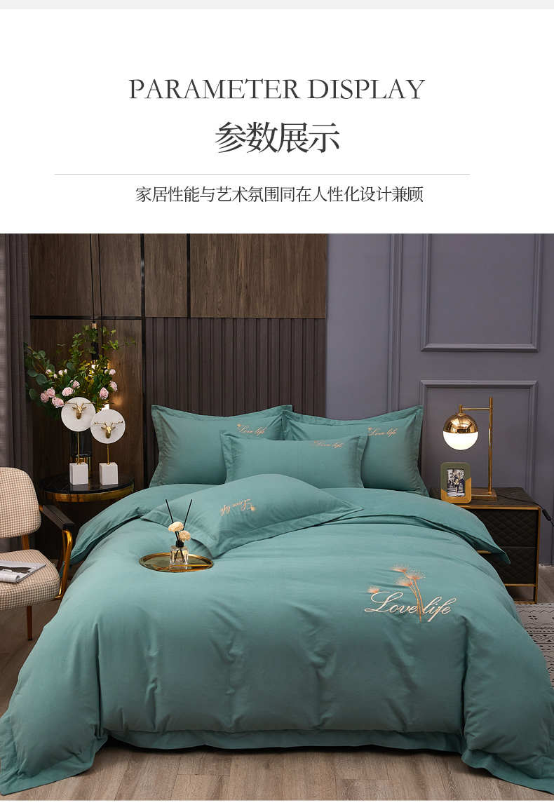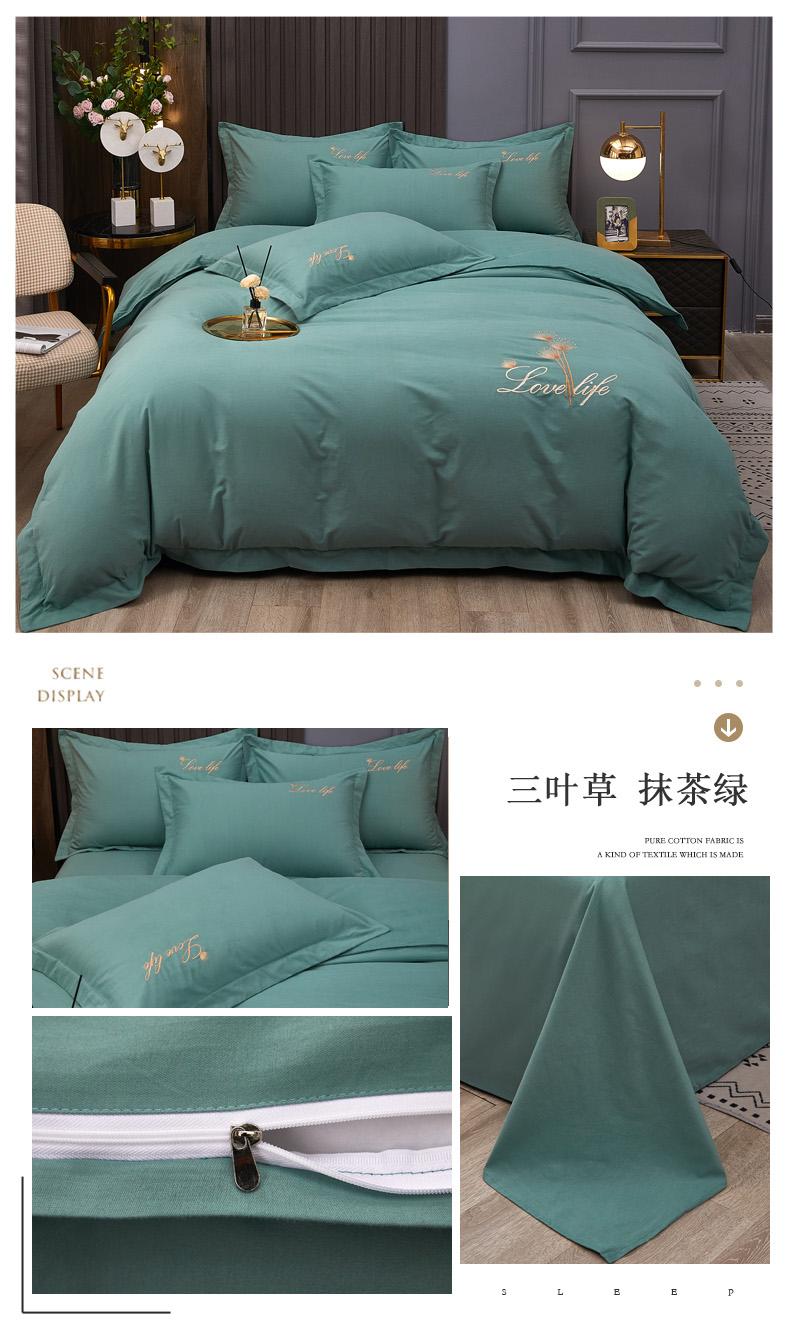 商品名称:芊寻 2024新款60支全棉磨毛绣花四件套 三叶草 抹茶绿
