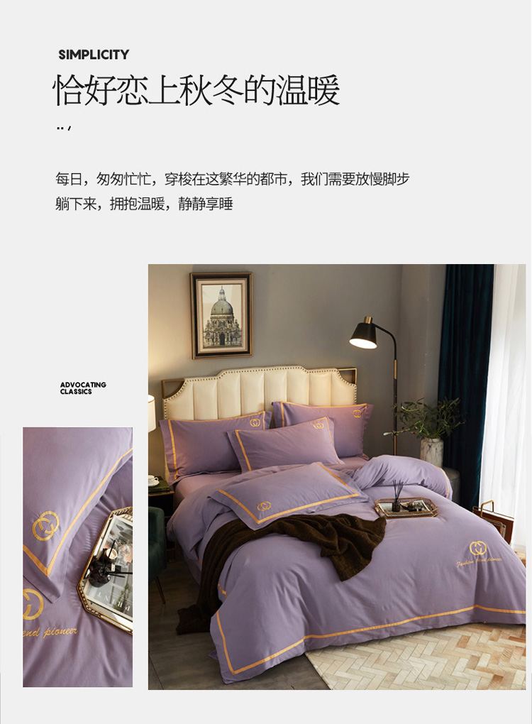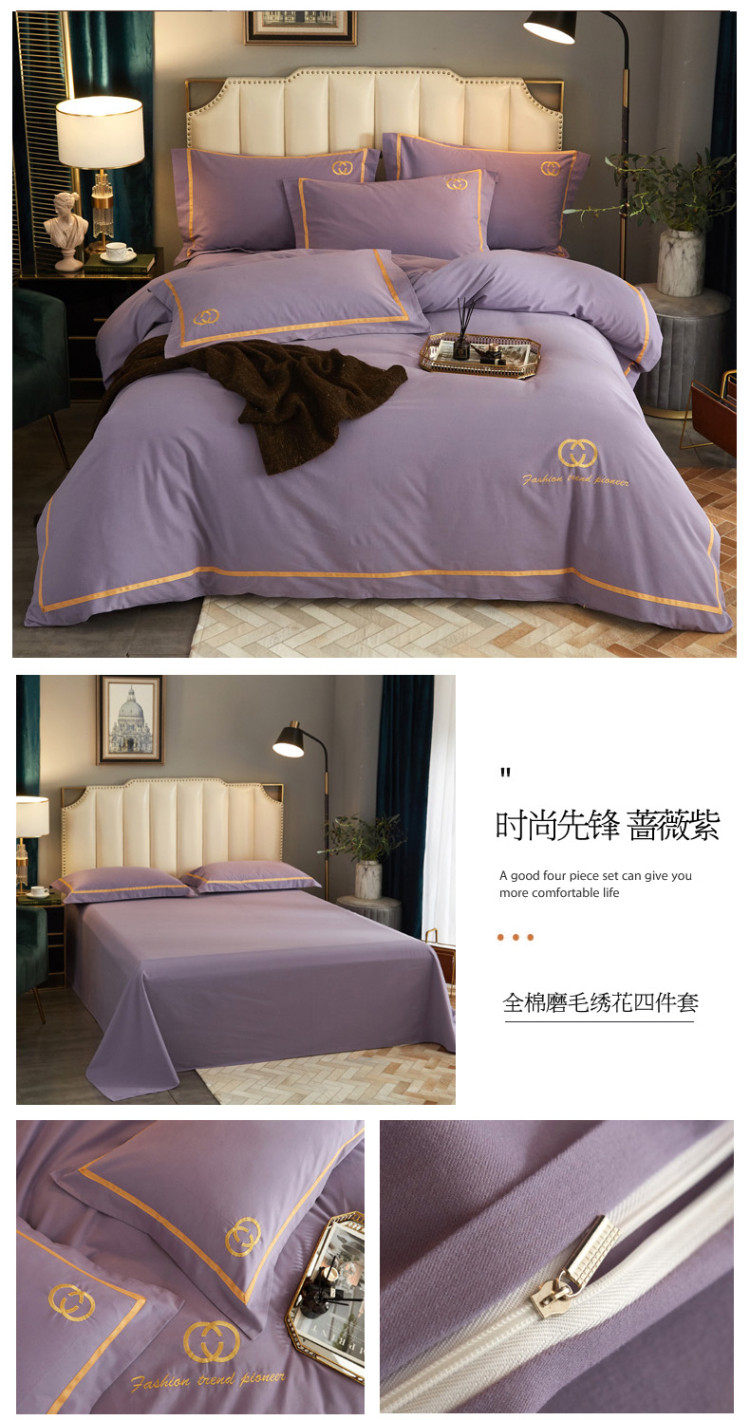 商品名称:启航2021秋冬爆款全棉磨毛简约刺绣款四件套时尚先锋 时尚先锋-蔷薇紫