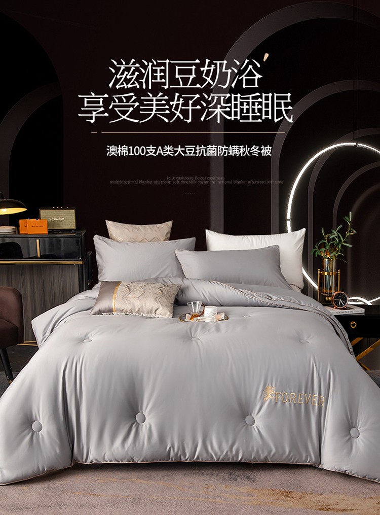 • 91家纺网 家纺一手货源 找家纺 头等舱澳棉100支A类大豆抗菌防螨秋冬被维多利灰