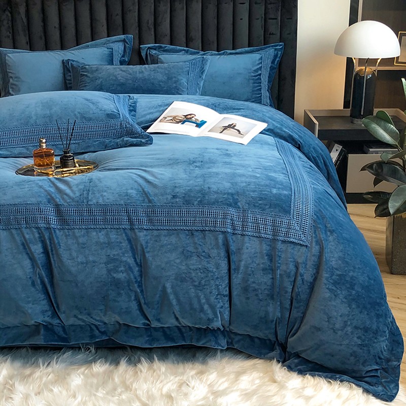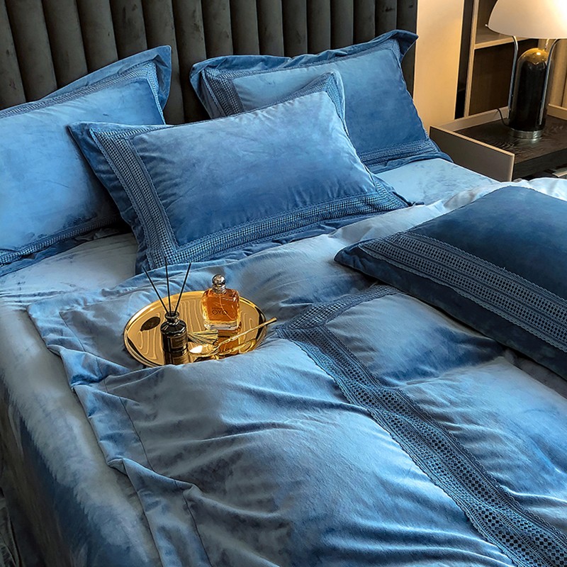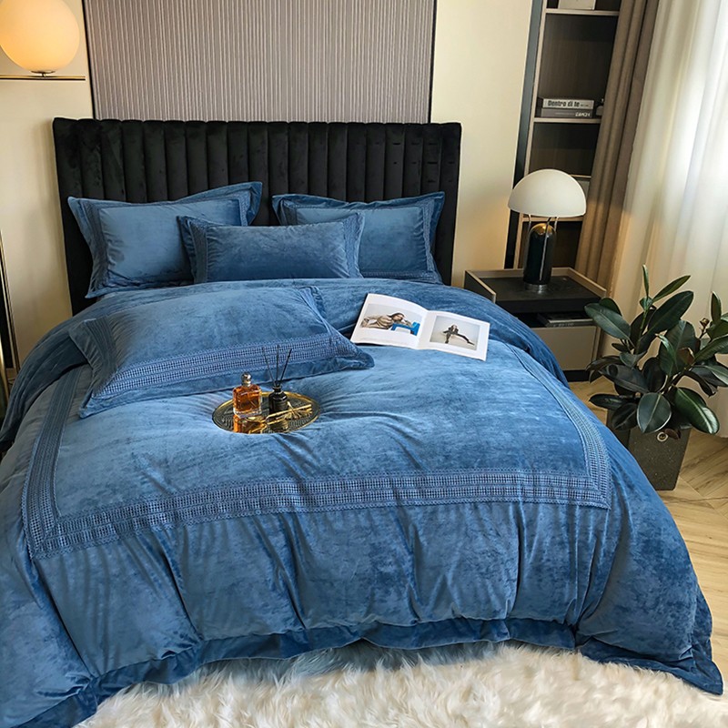 时亿家居 2022新款A类婴肤牛奶绒四件套觅系列 觅-蓝