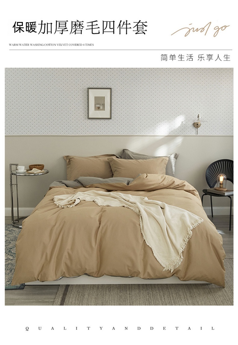 当前位置: 91家纺网 > 商品网购 > 床品套件 > 四件套 > 普通磨毛四件套 > 2021新款加厚磨毛四件套奶茶浅棕