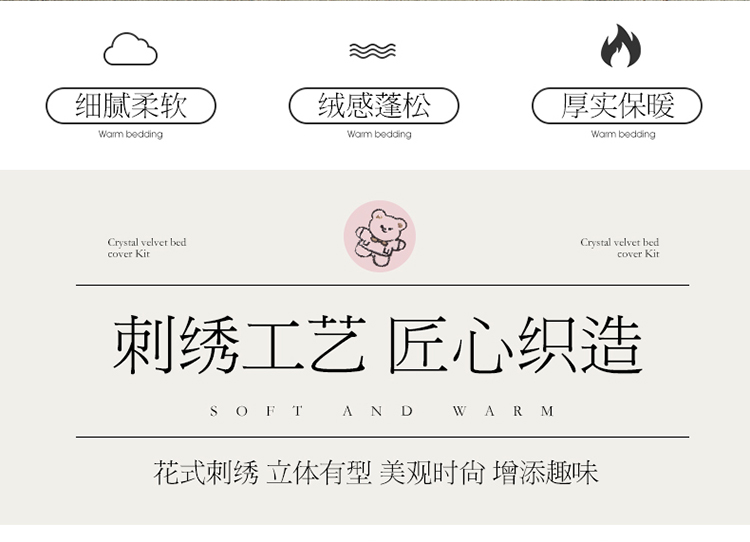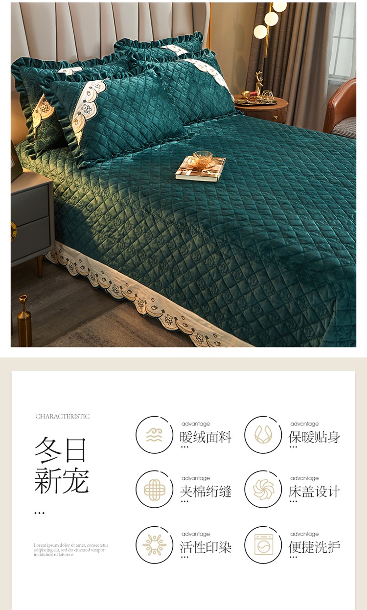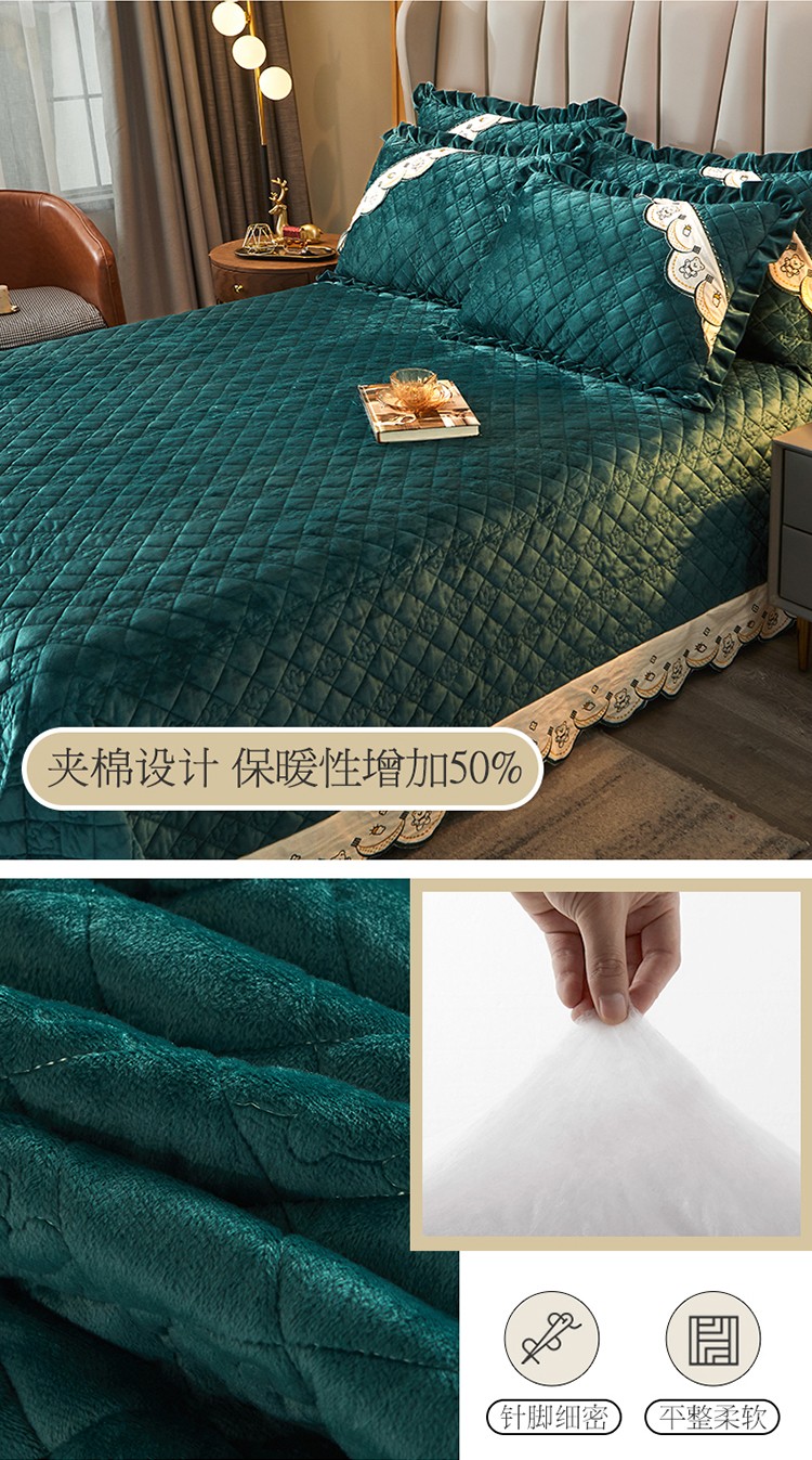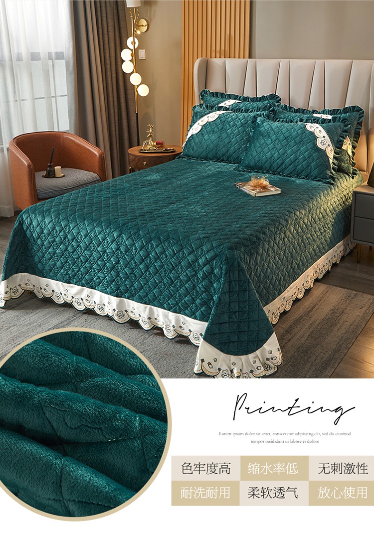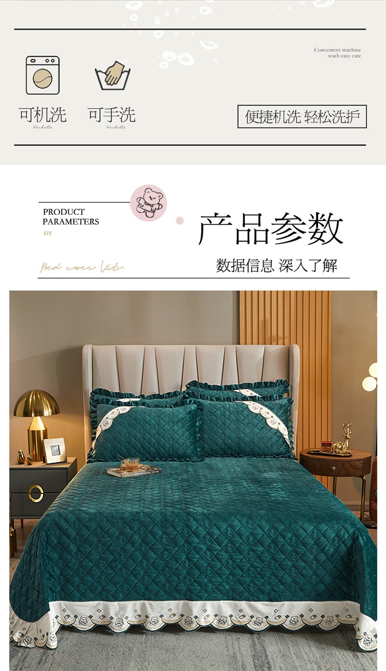 商品名称:宜凡家纺 2021新款水晶绒夹棉绗缝床盖三件套快乐小熊-墨绿