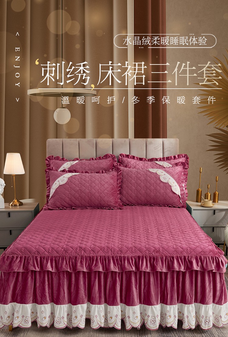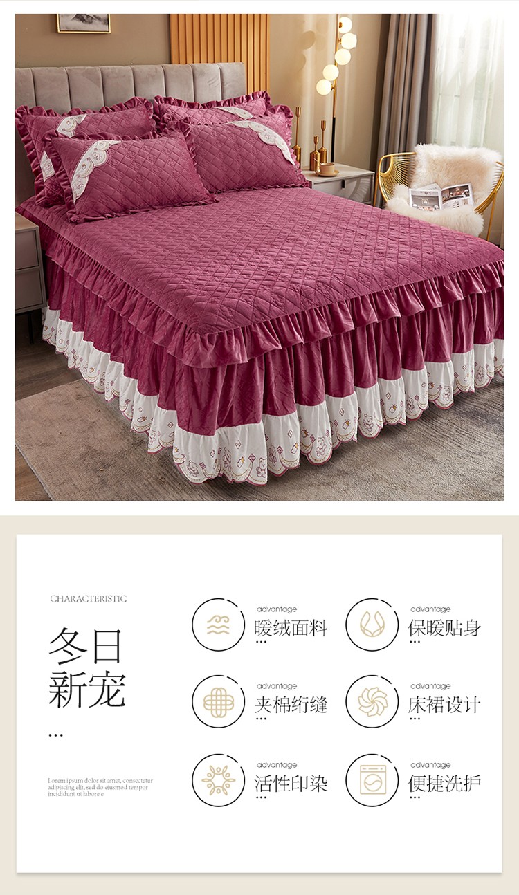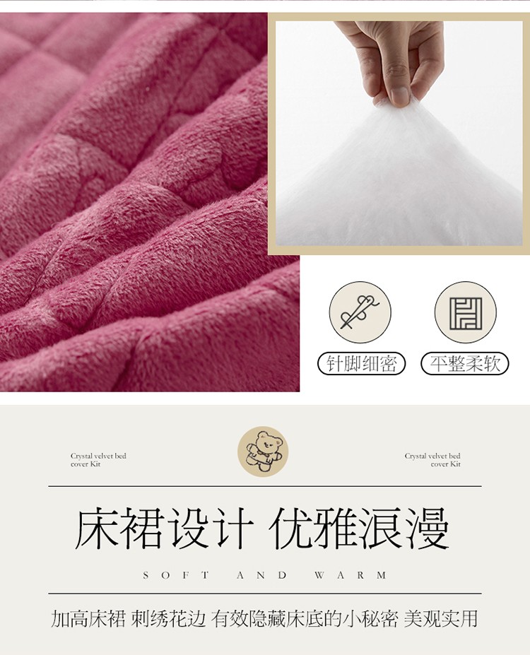 (总)宜凡家纺 2025新款兔绒提花牛奶绒夹棉床裙四件套,爱心 少女粉,爱心 粉紫,爱心 驼色,蝶舞 大红,蝶舞 米色,蝶舞 浅紫,蝶舞 玉色,简爱 苍青,简爱 豆沙紫,简爱 玉色,樱桃 苍青,樱桃 豆沙紫,樱桃 奶油白