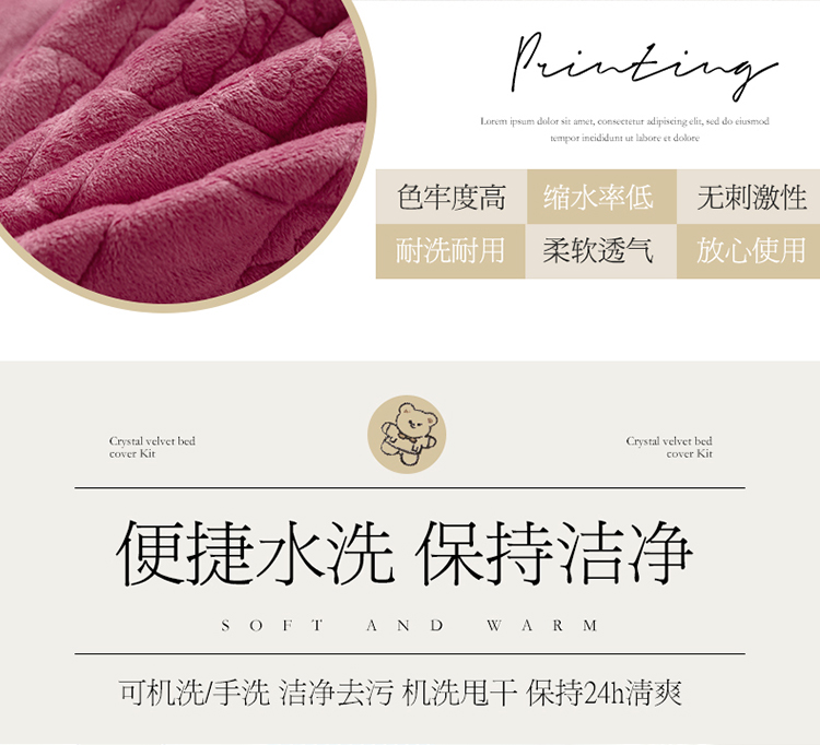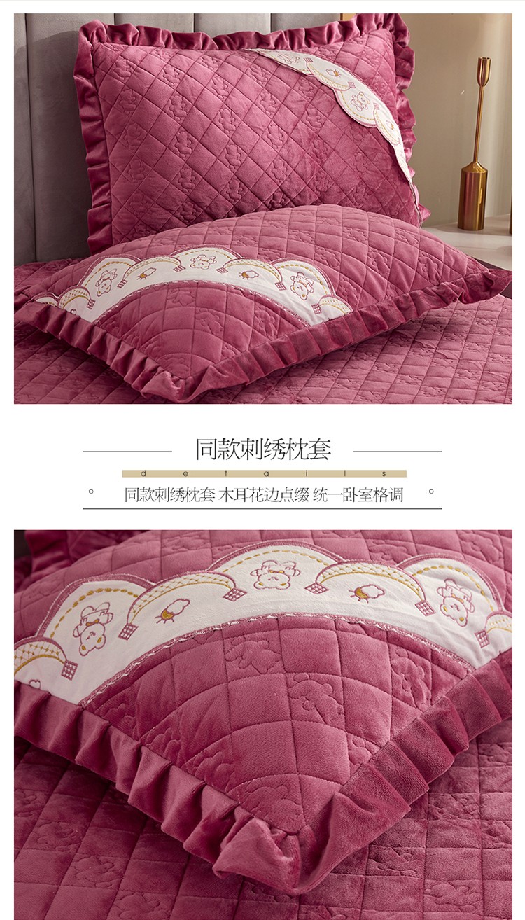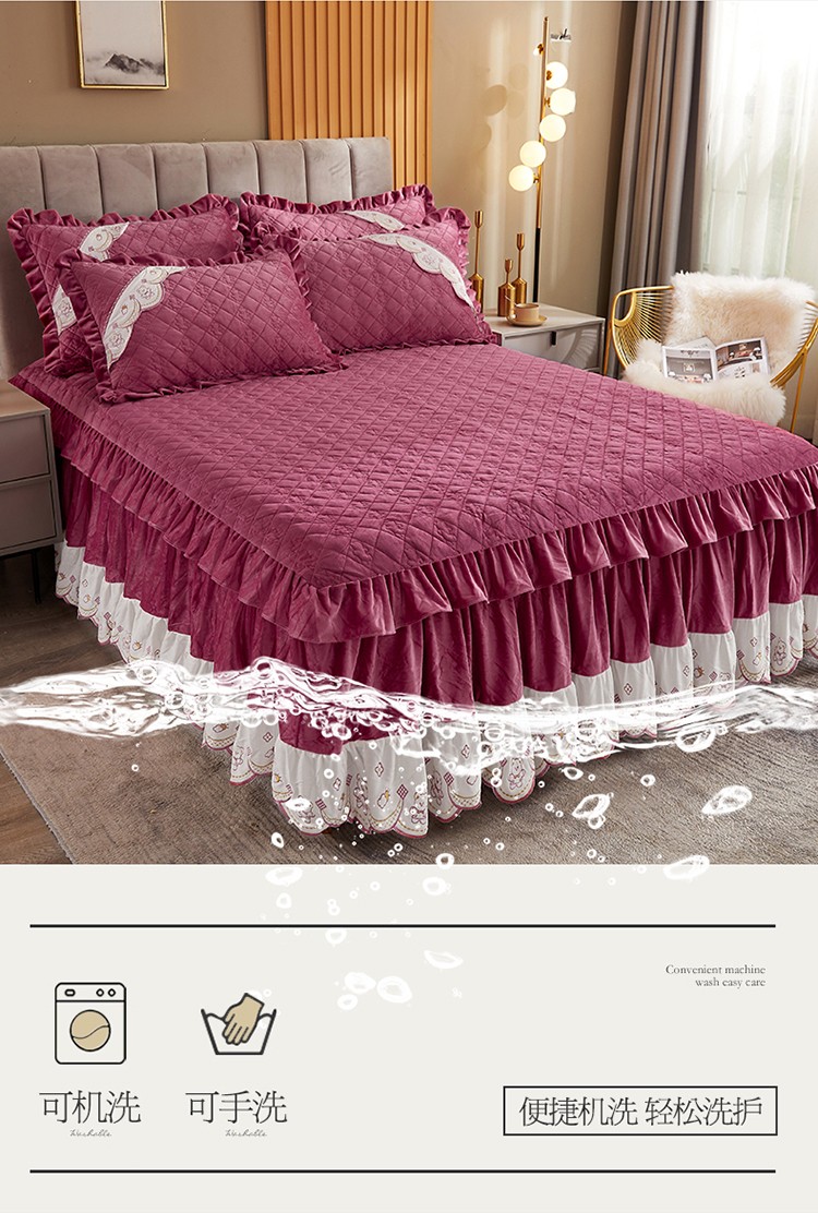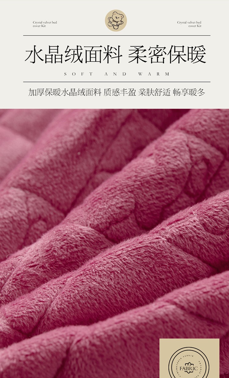 商品名称:宜凡家纺 2021新款水晶绒夹棉绗缝床裙三件套快乐小熊深豆沙