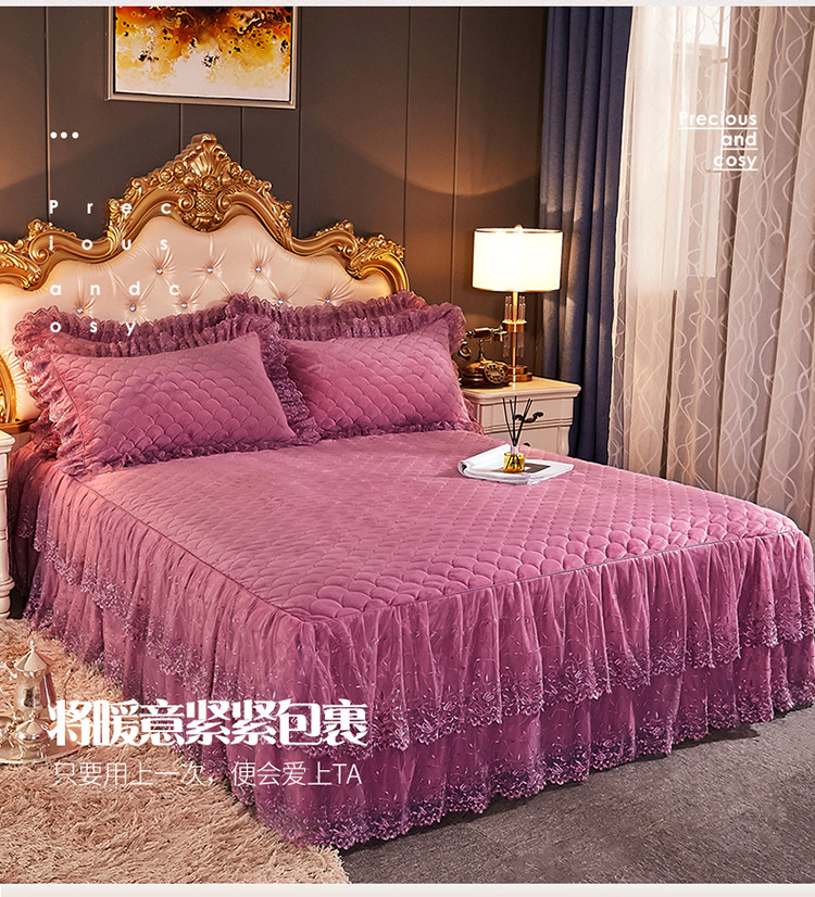 恒爱 2021新款水晶绒夹棉刺绣单床裙 翩翩花舞-豆沙红
