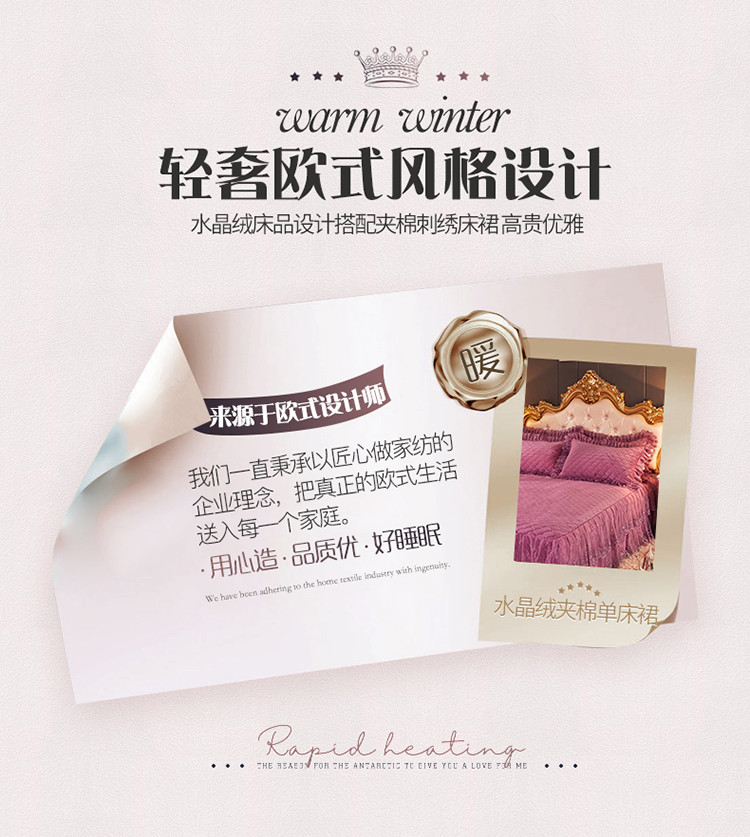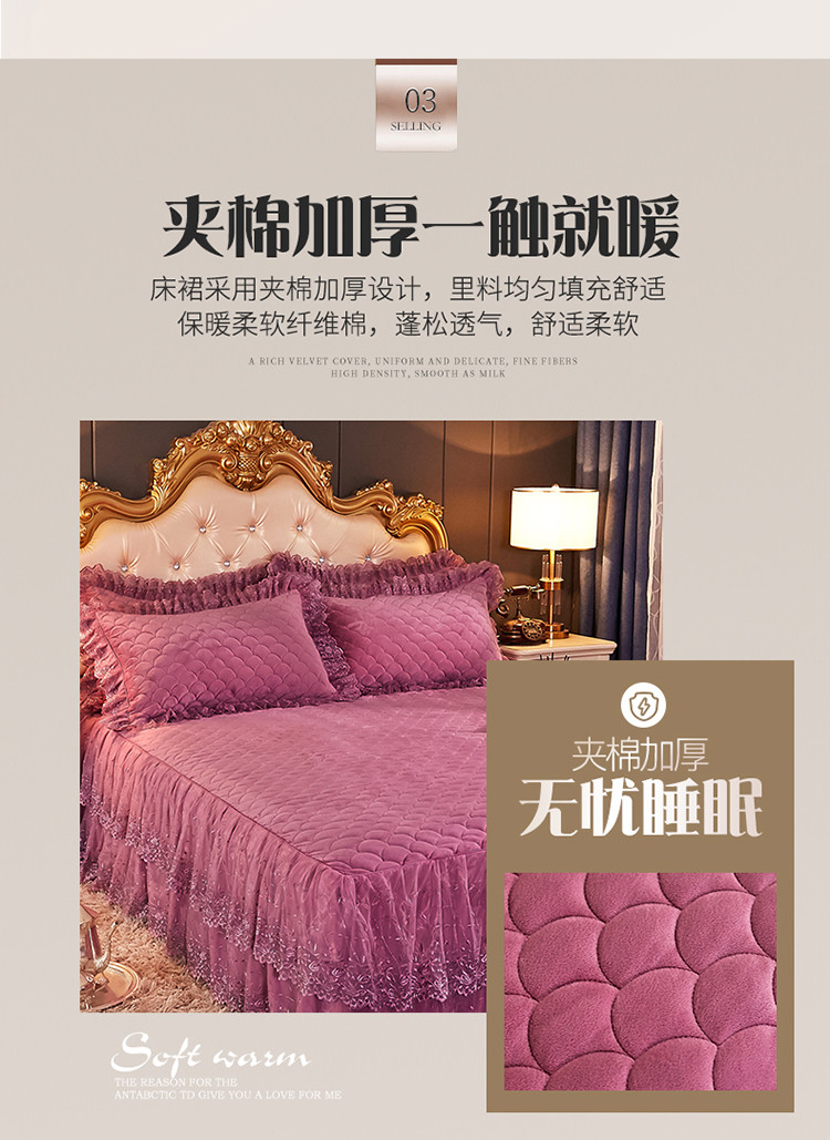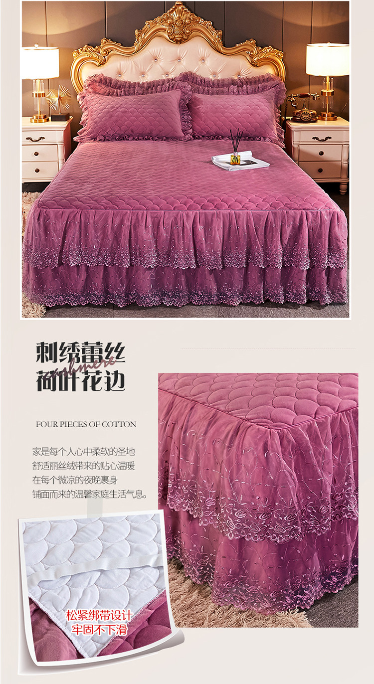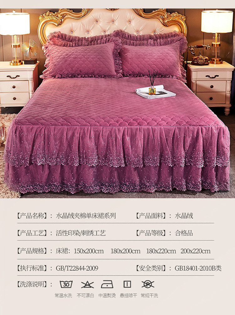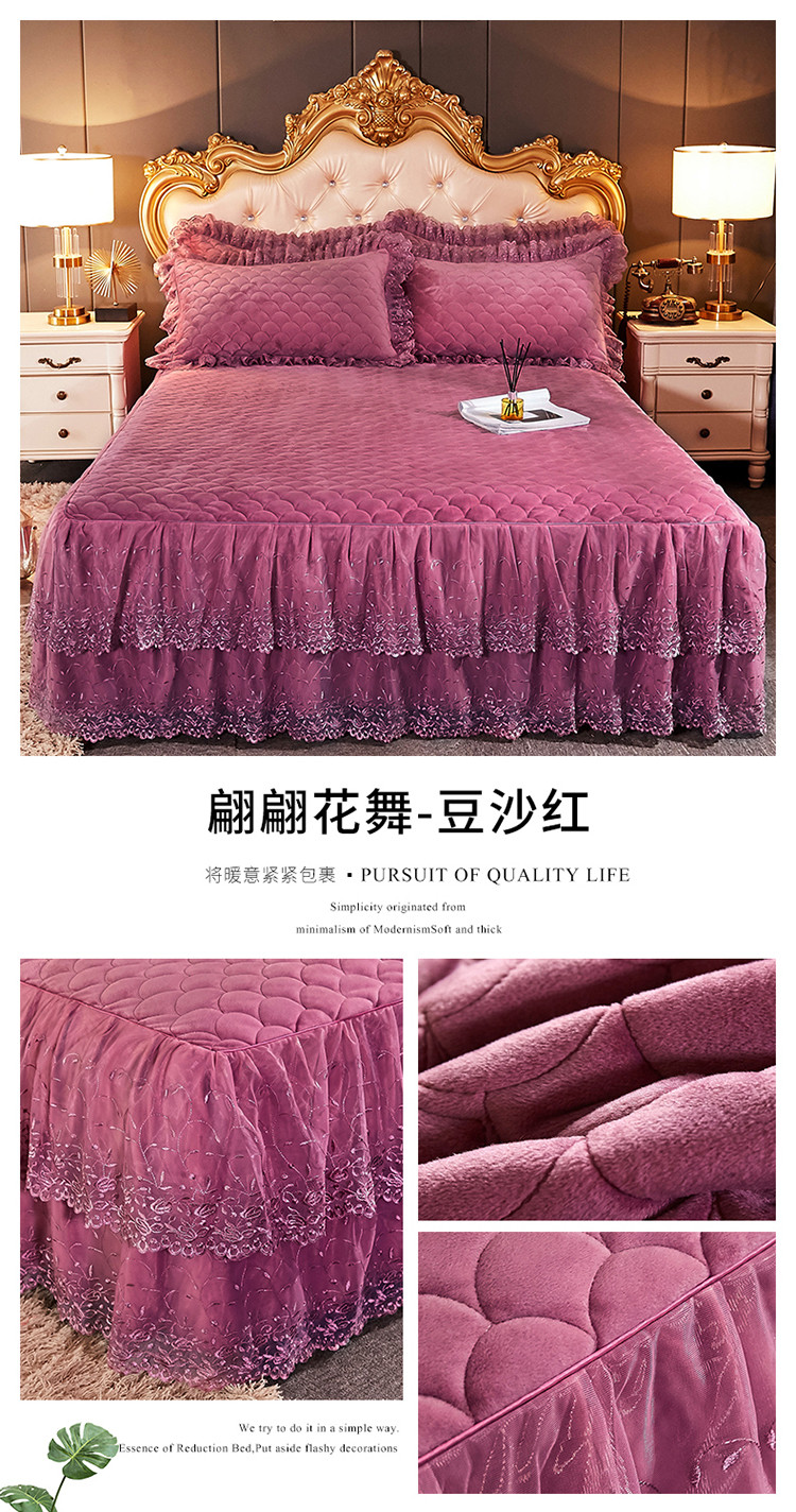 • 91家纺网 家纺一手货源 找家纺 恒爱 2021新款水晶绒夹棉刺绣单床裙 翩翩花舞-豆沙红