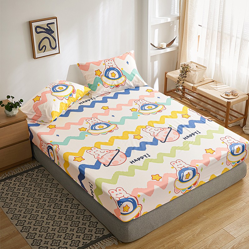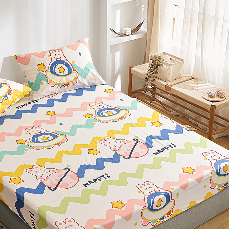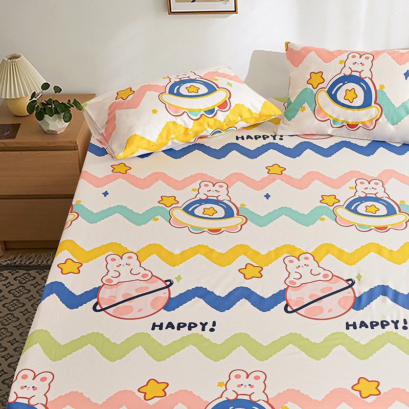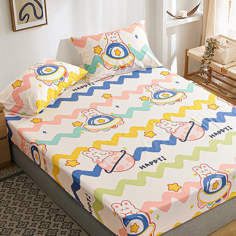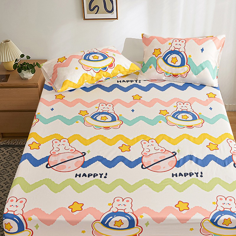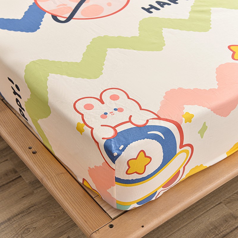 茉夕家纺 2021新款全棉印花床笠 星球兔