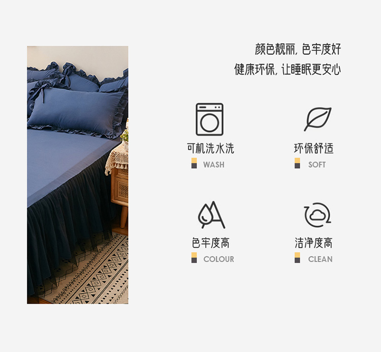 商品名称:莉莉安家纺 2025新款悦色系列纯色磨毛单床裙 藏蓝