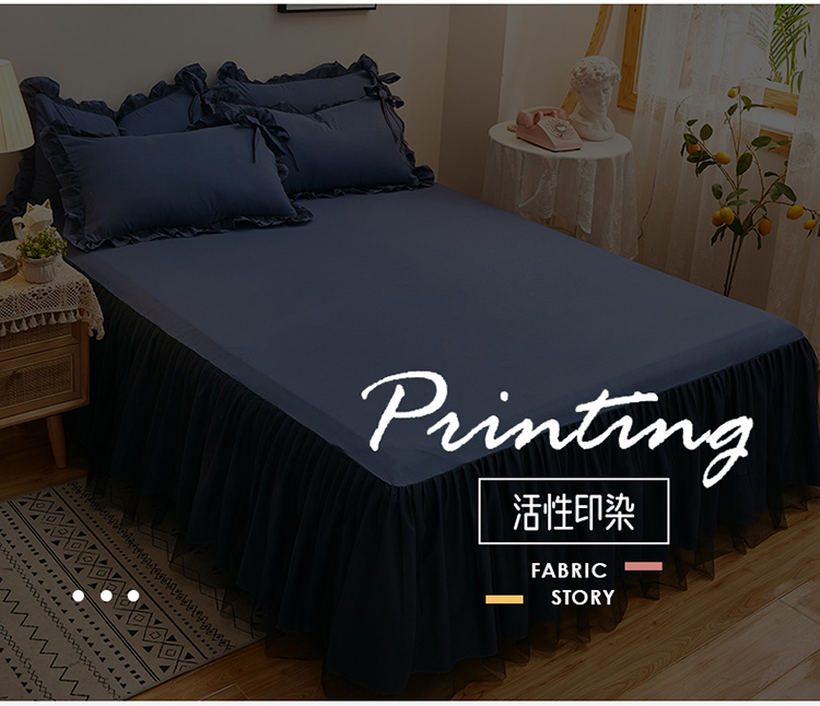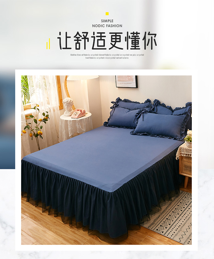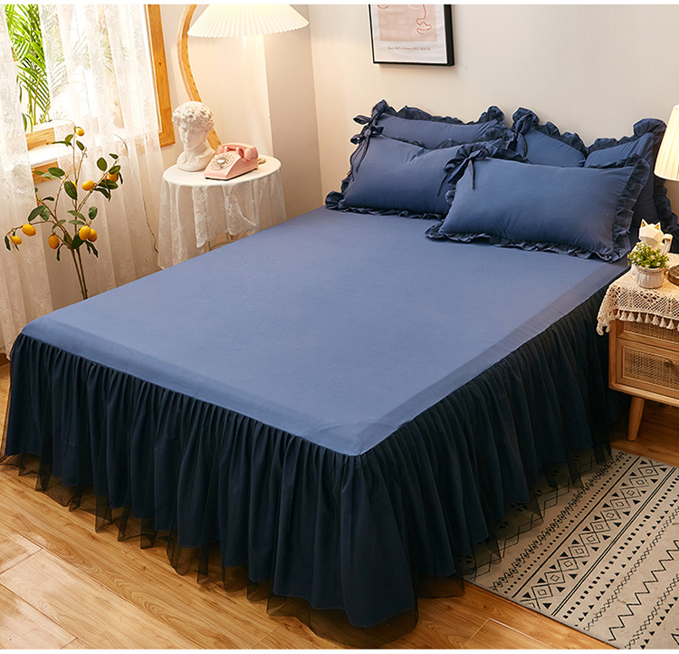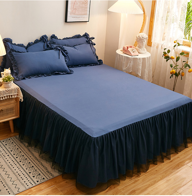 莉莉安家纺 2025新款悦色系列纯色磨毛单床裙 藏蓝