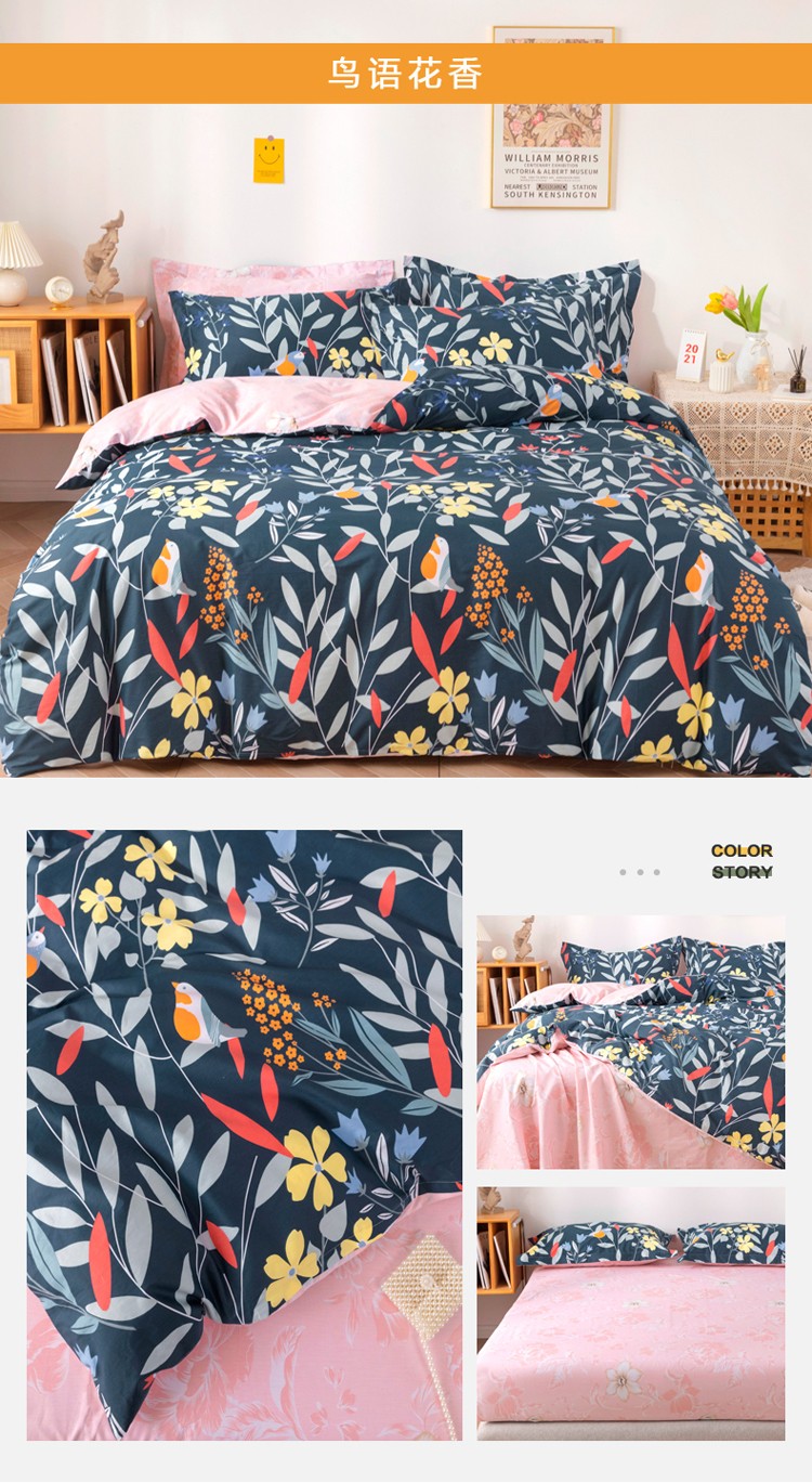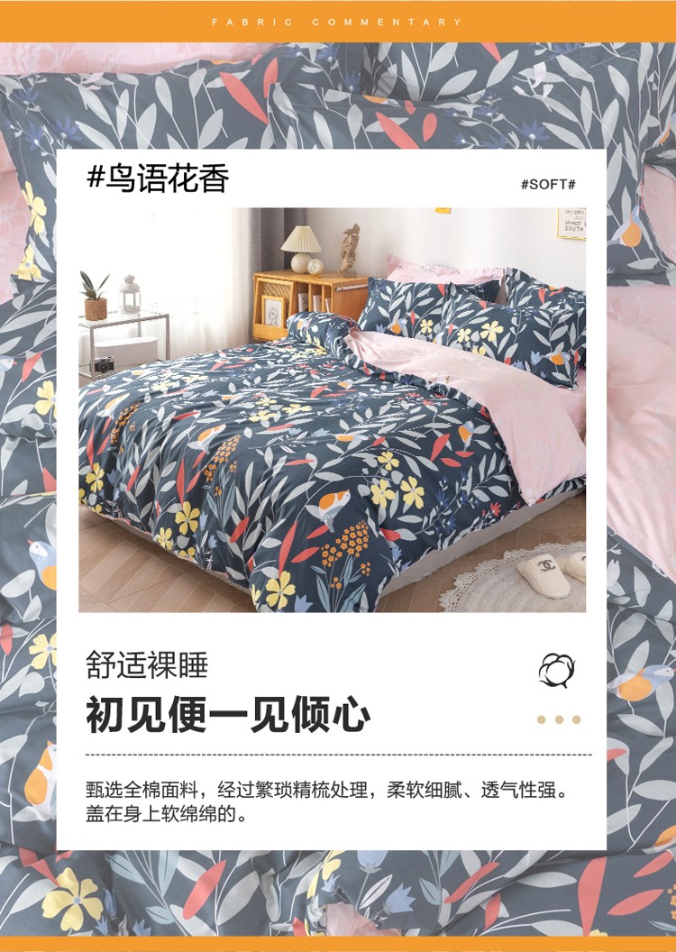 商品名称:星期三家纺 2021年冬季新款铂金全棉13372四件套(加老板微信有会员价) 鸟语花香