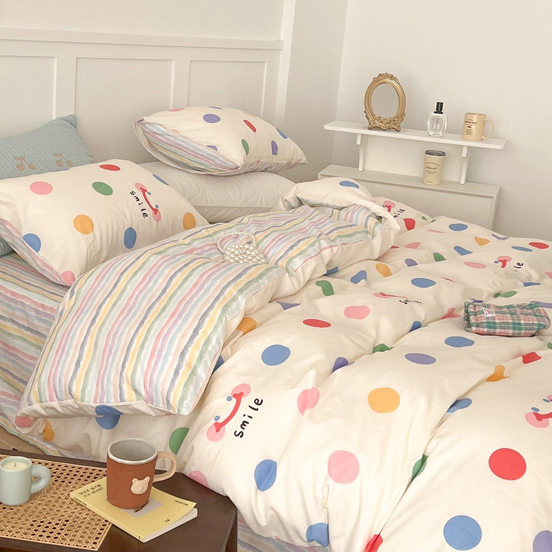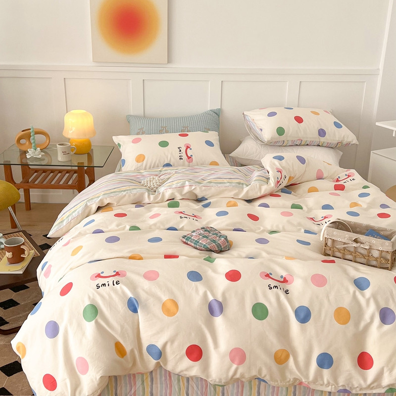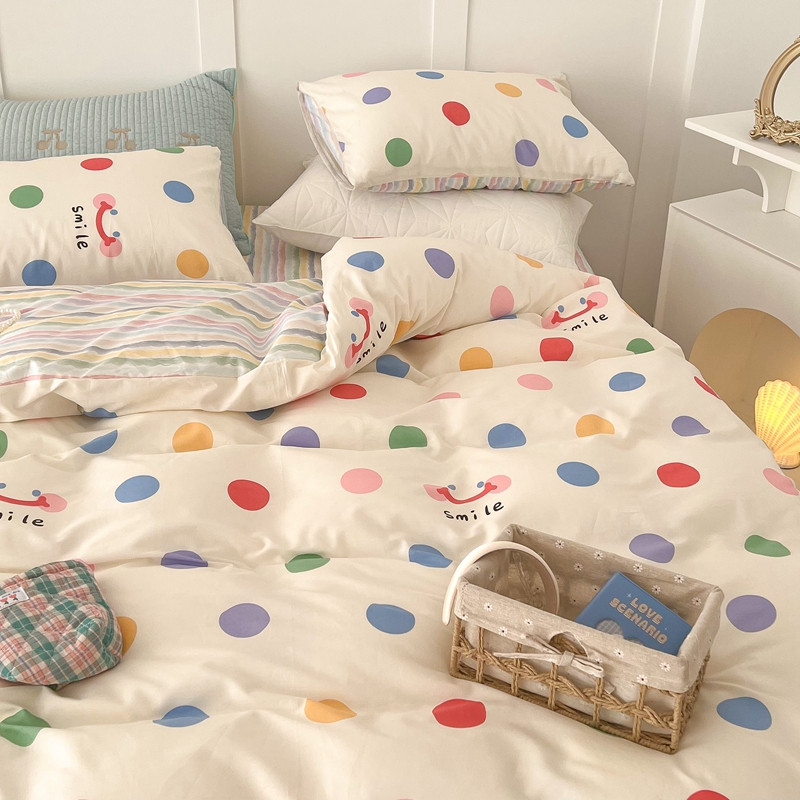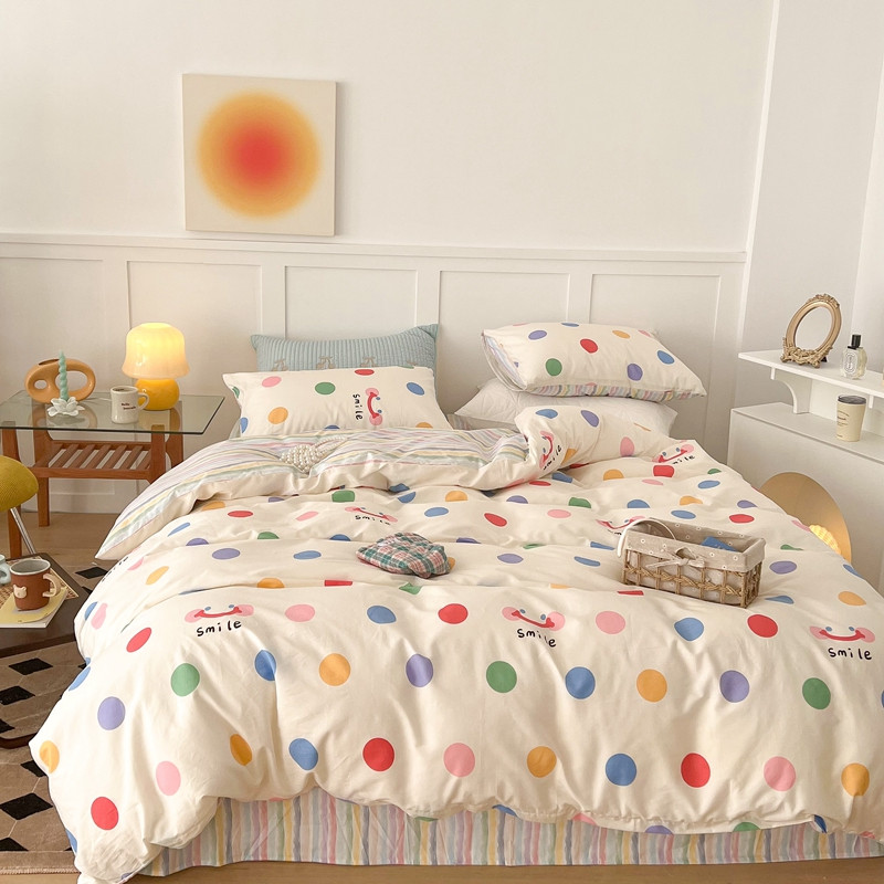 昔可家纺 2022新款13372全棉普通款简约ins四件套 微笑彩波点