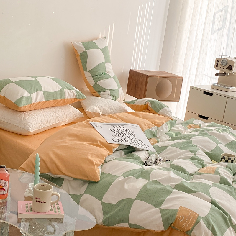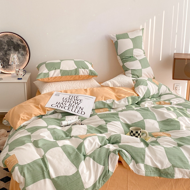 昔可家纺 2022新款13372全棉普通款异形棋盘格四件套 异形棋盘绿