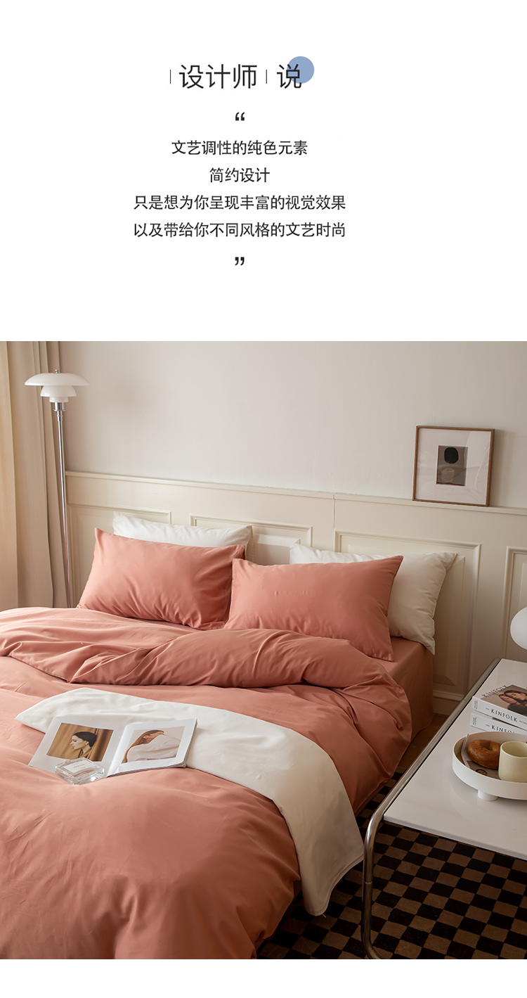 绫韵 2022新款13374全棉素色双拼系列被套 海棠红
