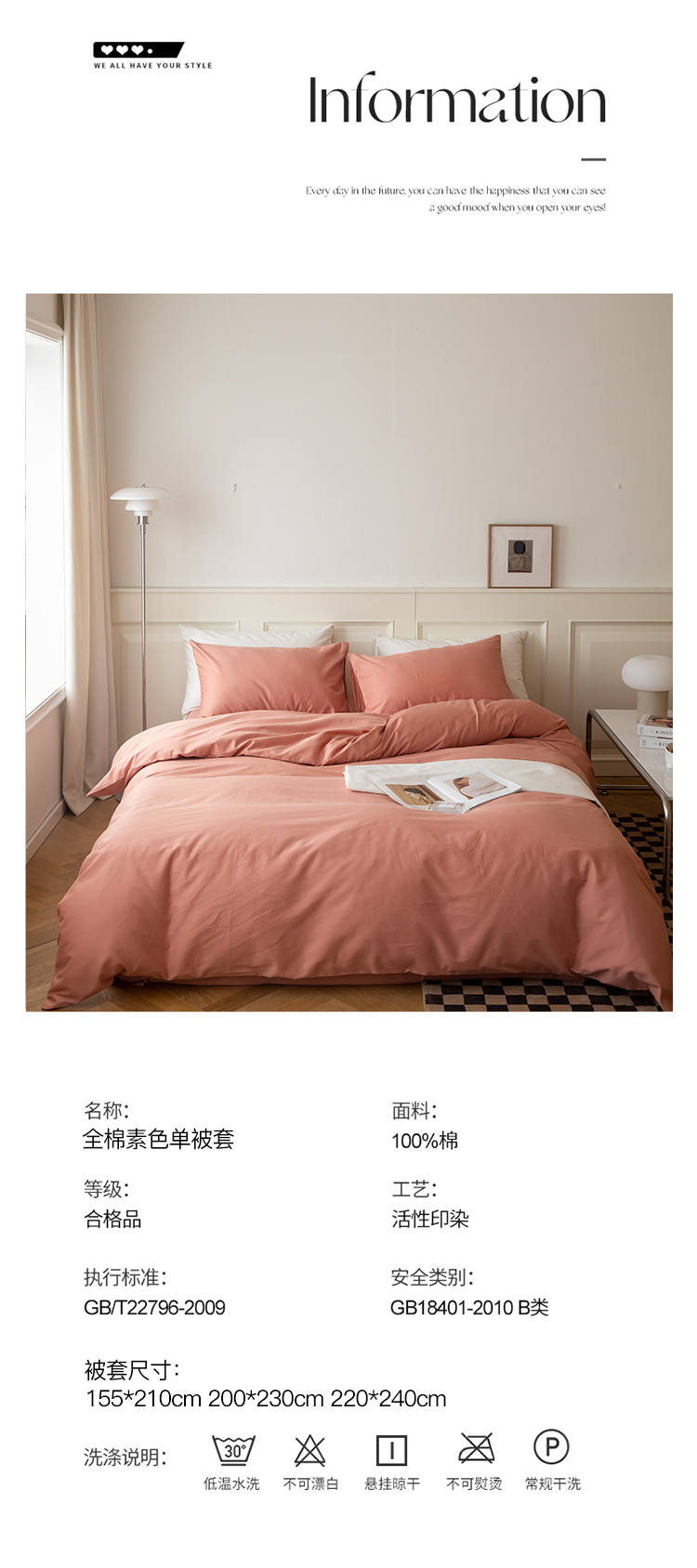 商品名称:绫韵 2022新款13374全棉素色双拼系列被套 海棠红