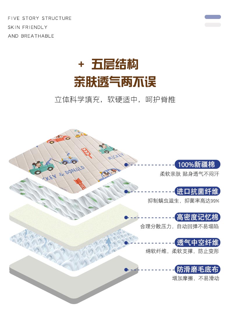 (总)鑫钰 迪士尼全棉加厚床垫儿童软垫家用可折叠防滑垫子