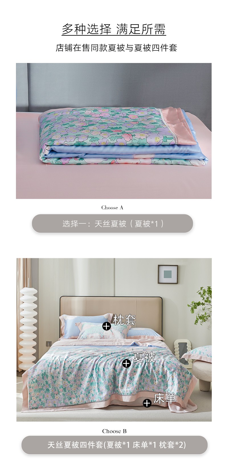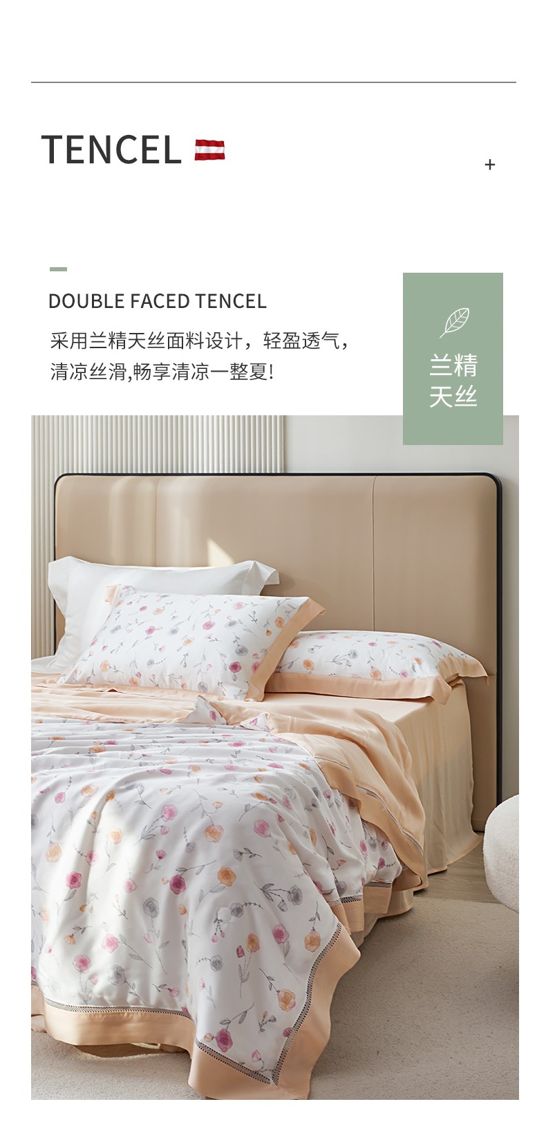 (总)榻尚家居 2025新款天丝床盖夏被夏凉被空调被四件套-佩利兹,佩利兹床盖夏被四件套-粉色,佩利兹床盖夏被四件套-香槟