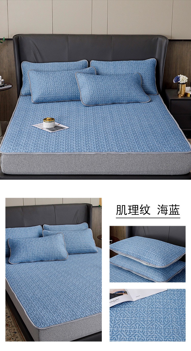 商品名称:纽缦家纺 2022新款纯色肌理纹床单三件套 肌理纹海蓝