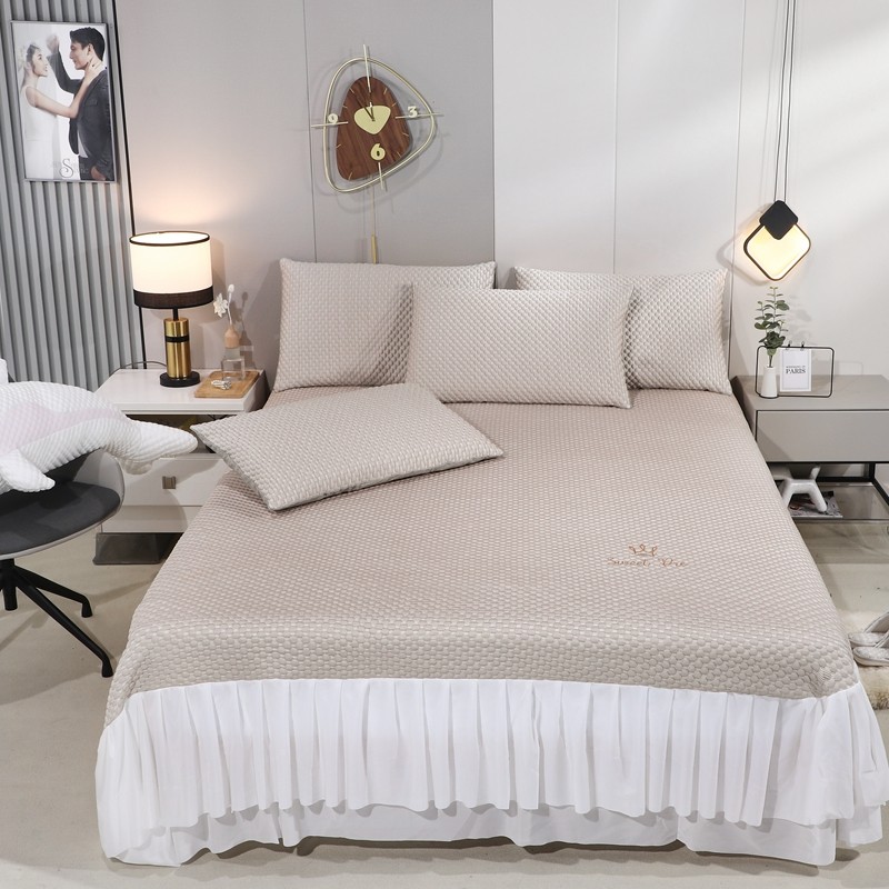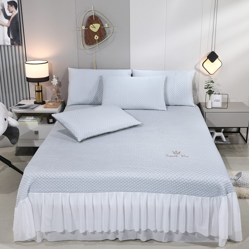 (总)新月家纺 2022新款冰豆豆蕾丝床裙款凉感席凉席三件套